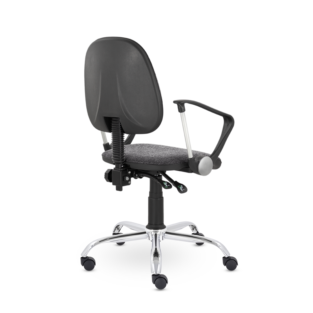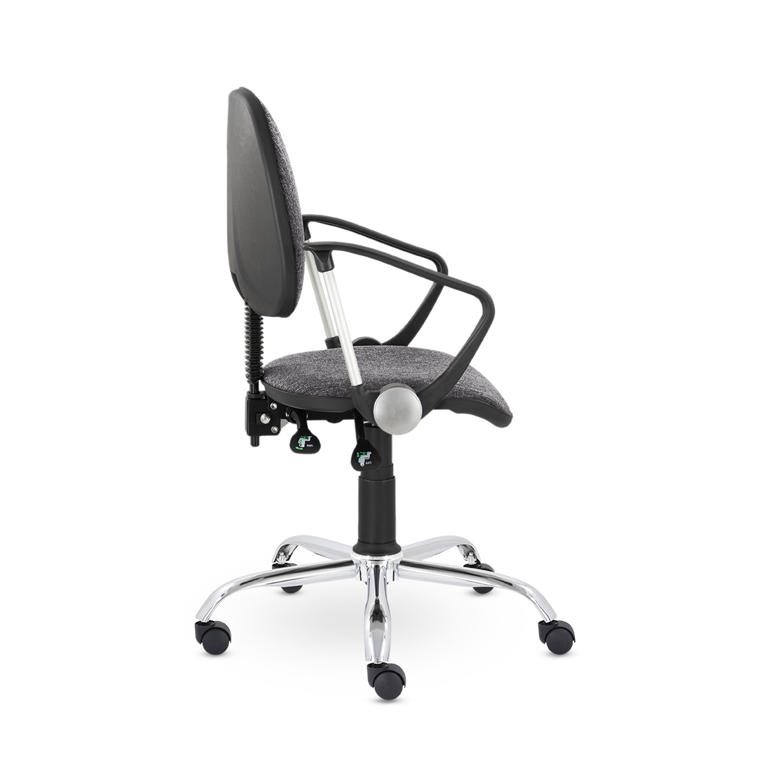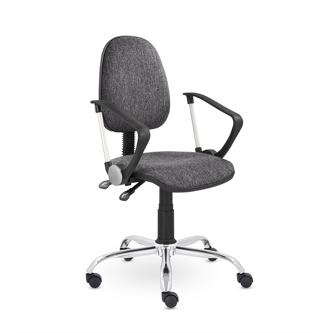Данная модель отлично подойдет для небольших офисов. Кресло обито износостойкой тканью, имеет широкое сидение и удобные стильные подлокотники, которые сочетаются с хромированным основанием. Данную модель можно подстроить по высоте к любому столу.