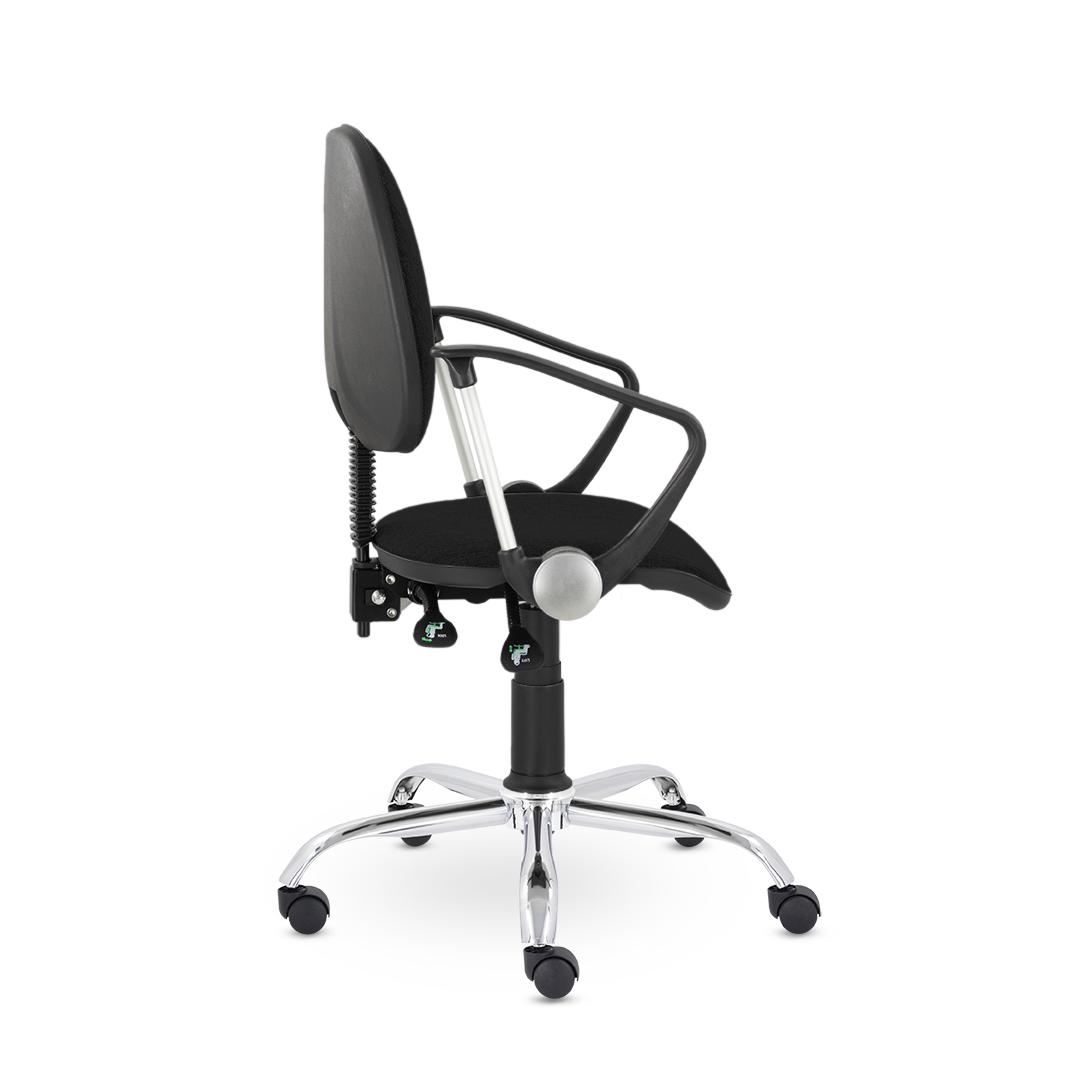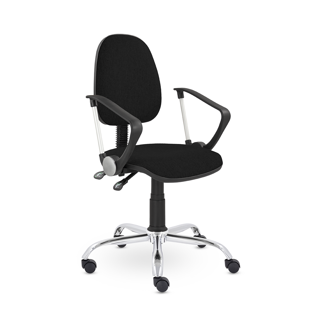 Данная модель отлично подойдет для небольших офисов. Кресло обито износостойкой тканью, имеет широкое сидение и удобные стильные подлокотники, которые сочетаются с хромированным основанием. Данную модель можно подстроить по высоте к любому столу.