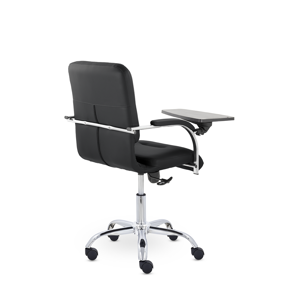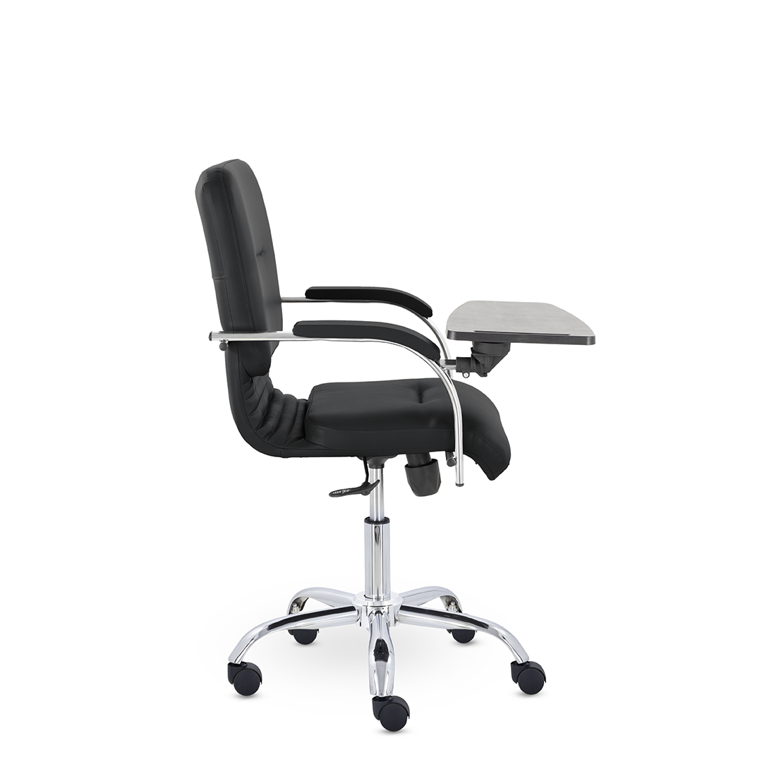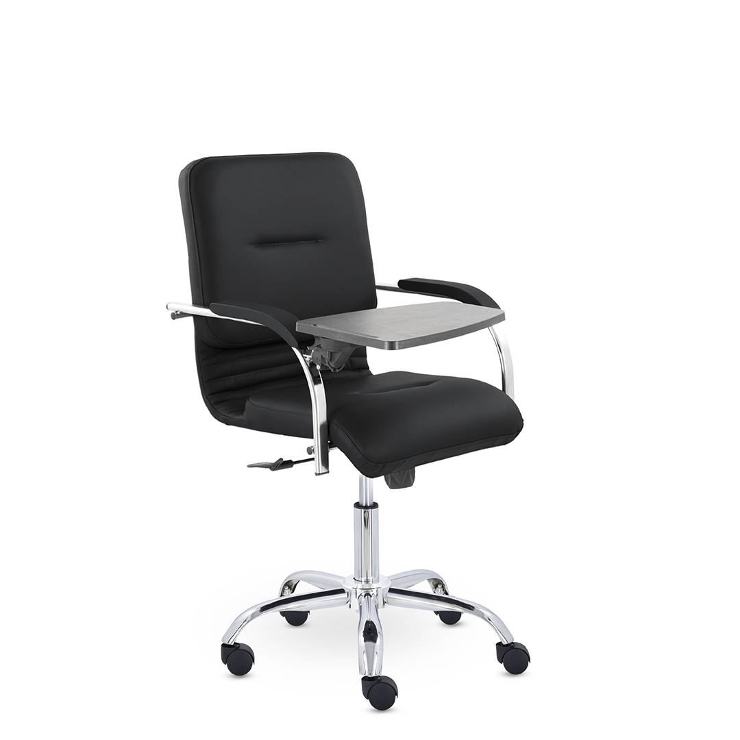 Улучшенная комплектация кресла включает горизонтальные прострочки, соединяющие спинку и сиденье, что придает креслу современный нео-классический стиль. Удобные накладки обеспечивают комфортную поддержку рук и способствуют их расслаблению. К креслу прилагается столик, выполненный из пластика. Модель отлично подойдет для конференц-залов, переговорных, актовых залов.