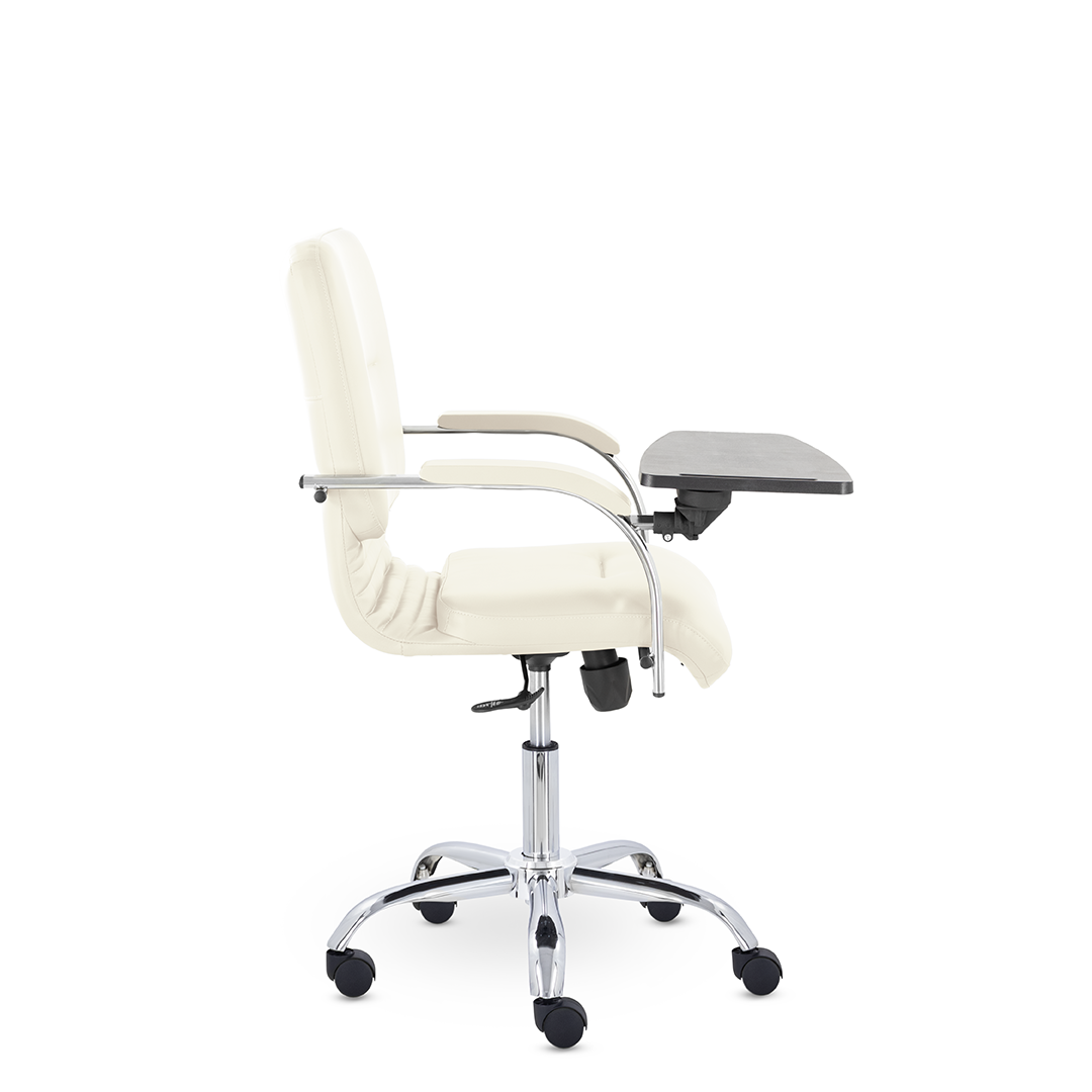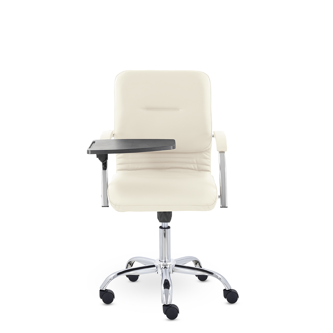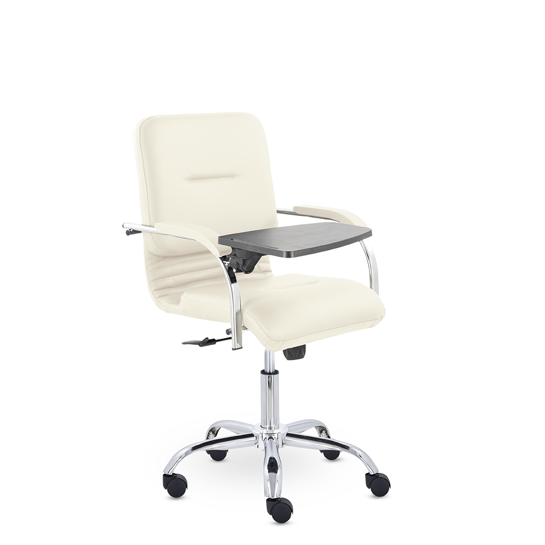 Улучшенная комплектация кресла включает горизонтальные прострочки, соединяющие спинку и сиденье, что придает креслу современный нео-классический стиль. Удобные накладки обеспечивают комфортную поддержку рук и способствуют их расслаблению. К креслу прилагается столик, выполненный из пластика. Модель отлично подойдет для конференц-залов, переговорных, актовых залов.