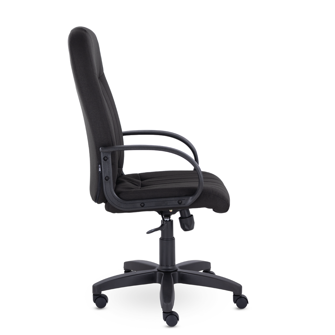 Кресло руководителя с мягкими увеличенными подушками. Широкая эргономичная спинка имеет две горизонтальные прострочки, которые отделяют подголовник от основной части спинки. Благодаря глубокому сиденью, в кресле будет удобно человеку среднего и высокого роста. Длинные пластиковые подлокотники способствуют комфортной посадке в кресле.