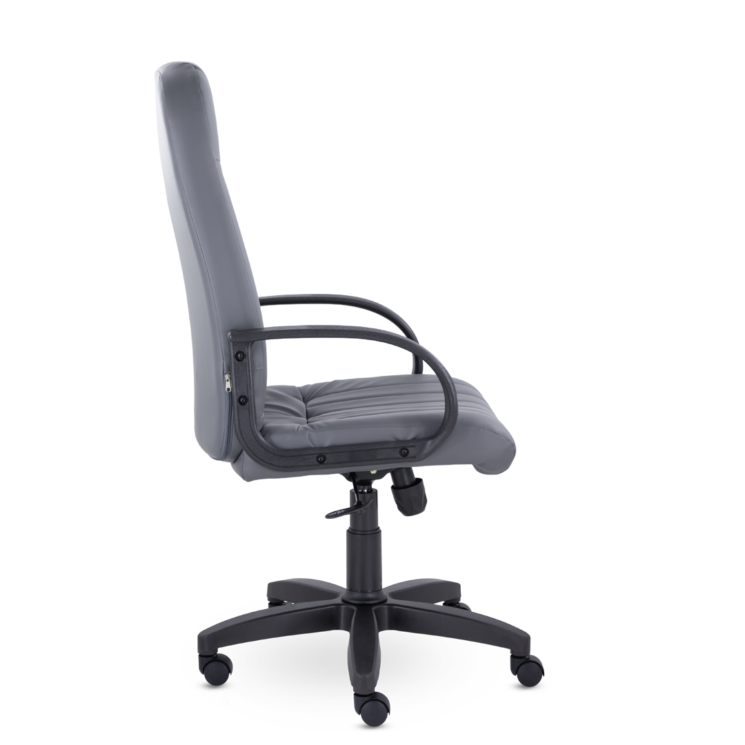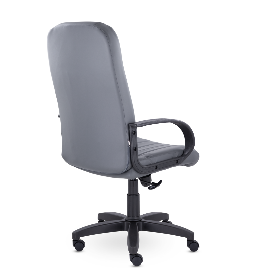 Кресло руководителя с мягкими увеличенными подушками. Широкая эргономичная спинка имеет две горизонтальные прострочки, которые отделяют подголовник от основной части спинки. Благодаря глубокому сиденью, в кресле будет удобно человеку среднего и высокого роста. Длинные пластиковые подлокотники способствуют комфортной посадке в кресле.