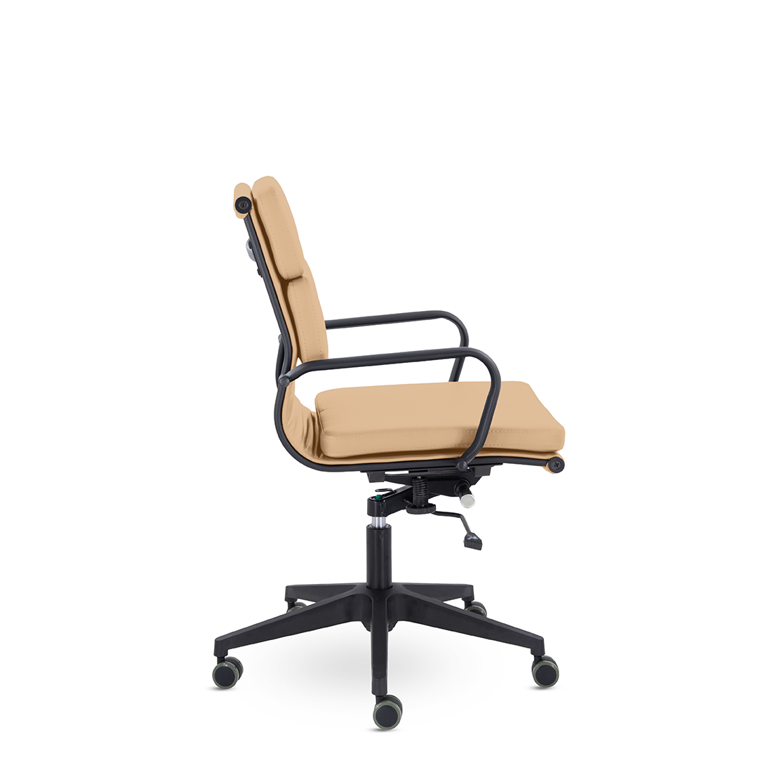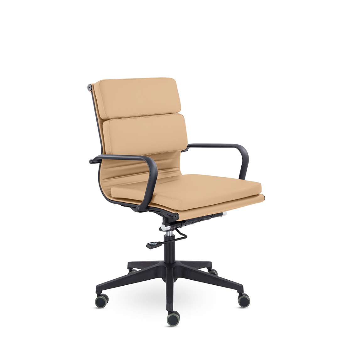 Кресло руководителя в современном металлическом каркасе. Комфорт создается благодаря мягким элементам спинки и сиденья. Черный каркас и узкая крестовина задают современный стиль креслу. Кресло отлично смотрится в строгих и открытых кабинетах.
