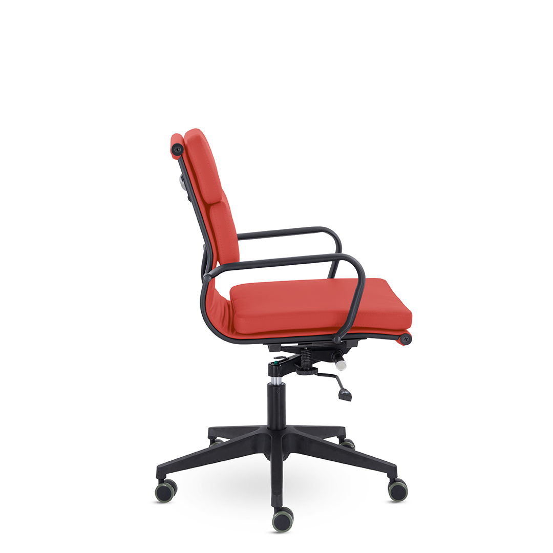 Кресло руководителя в современном металлическом каркасе. Комфорт создается благодаря мягким элементам спинки и сиденья. Черный каркас и узкая крестовина задают современный стиль креслу. Кресло отлично смотрится в строгих и открытых кабинетах.