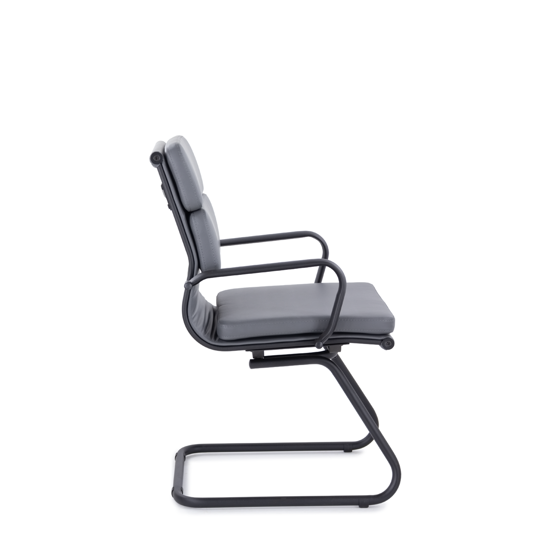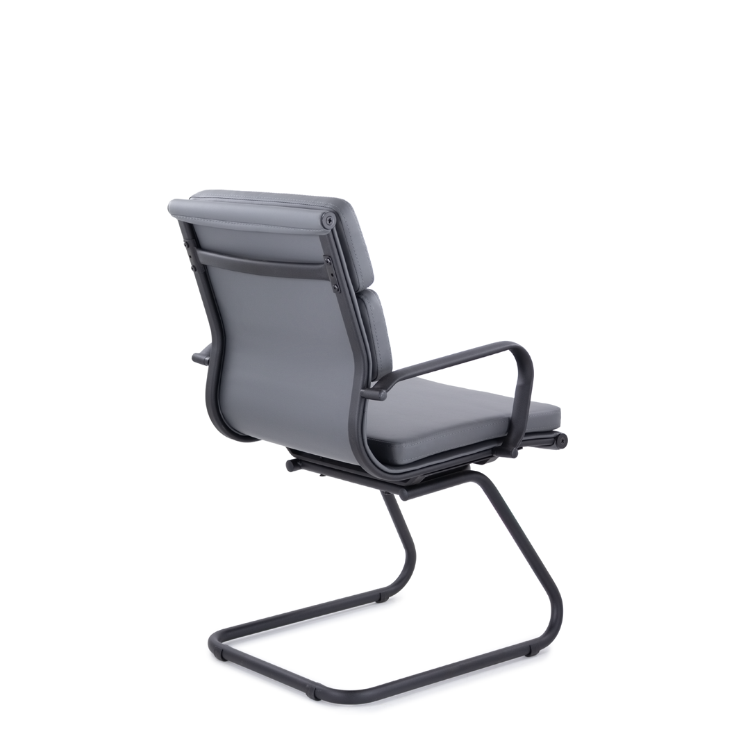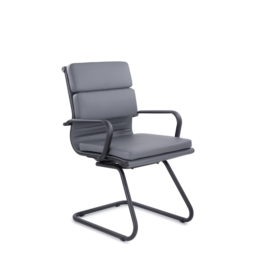 Кресло руководителя в современном металлическом каркасе. Комфорт создается благодаря мягким элементам спинки и сиденья. Кресло отлично смотрится в строгих и открытых кабинетах.