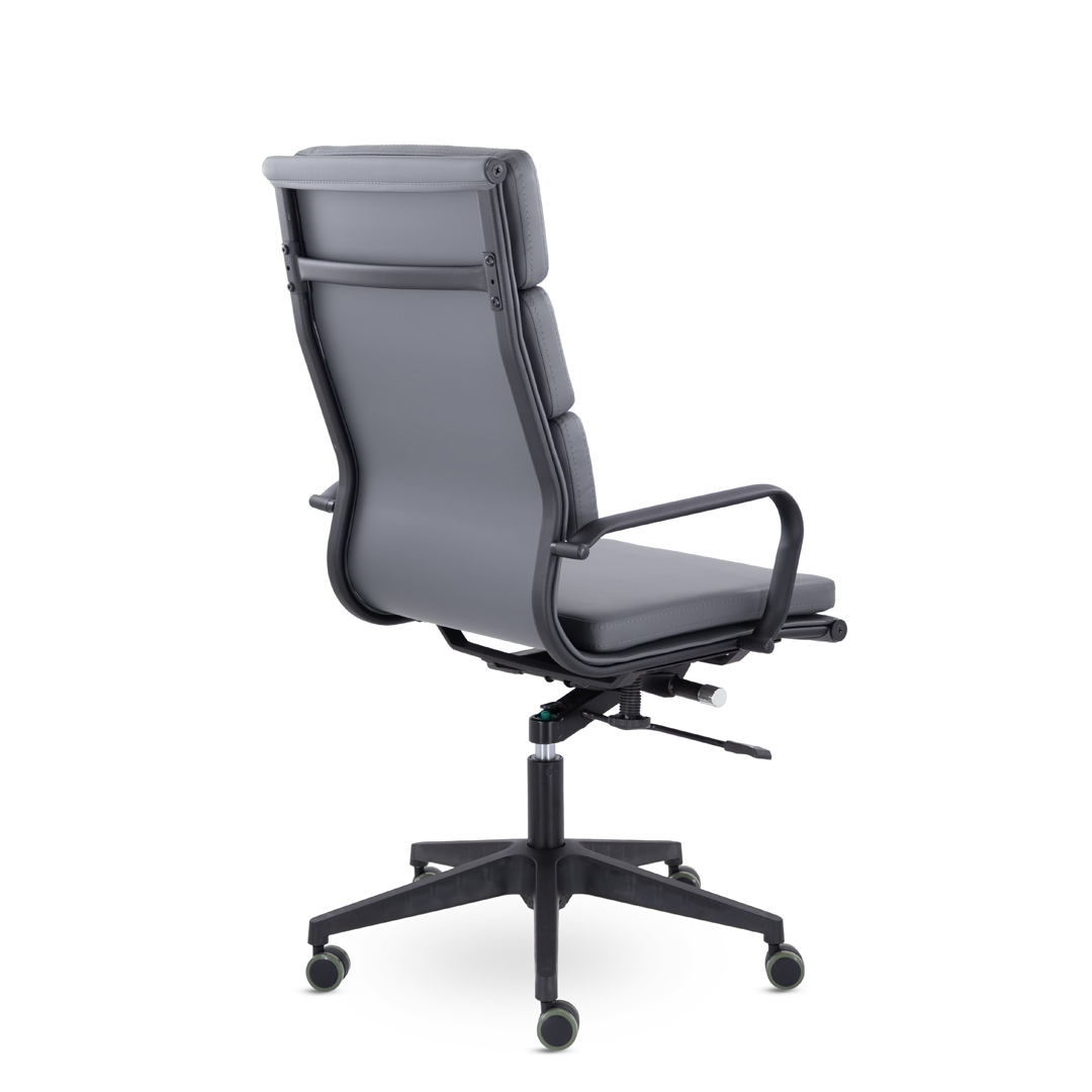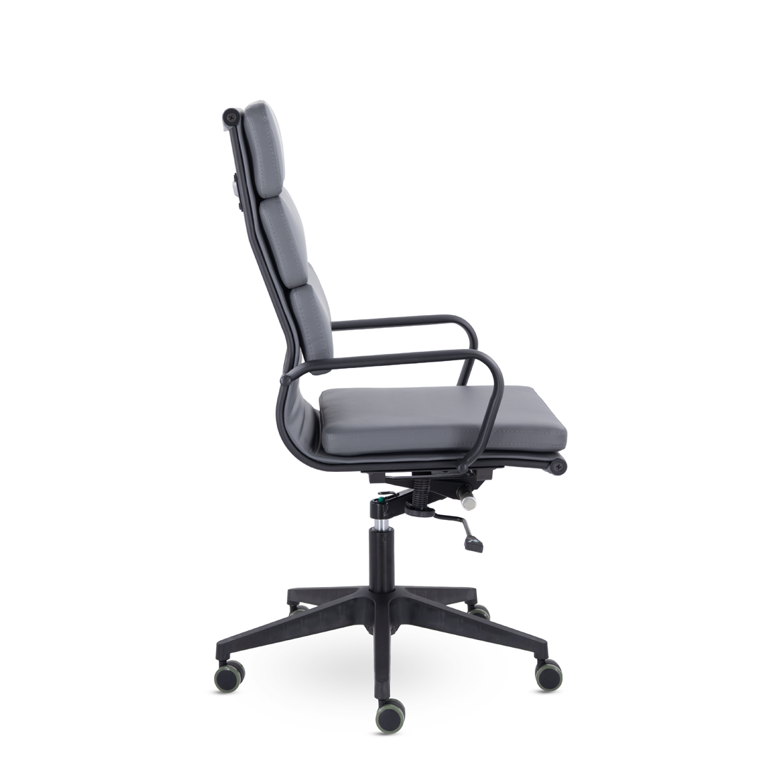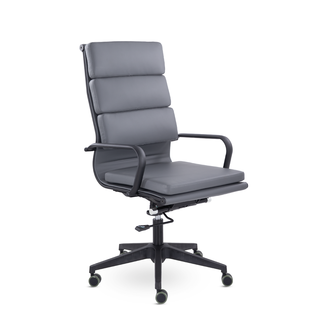 Кресло руководителя в современном металлическом каркасе. Комфорт создается благодаря мягким элементам спинки и сиденья. Черный каркас и узкая крестовина задают современный стиль креслу. Кресло отлично смотрится в строгих и открытых кабинетах.