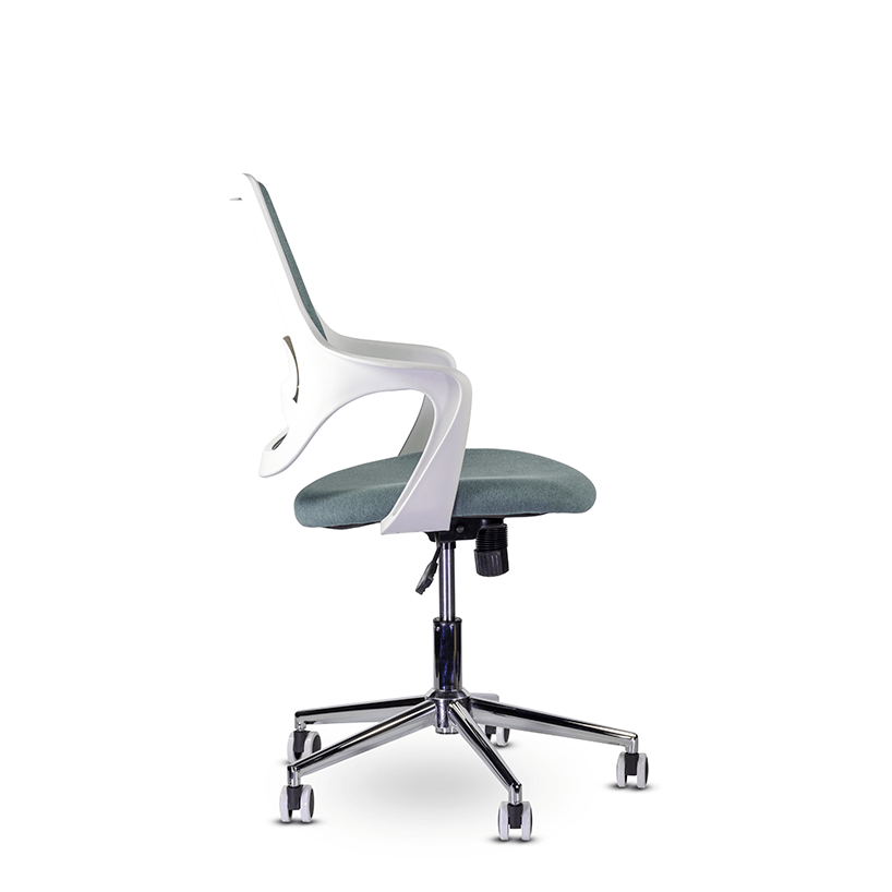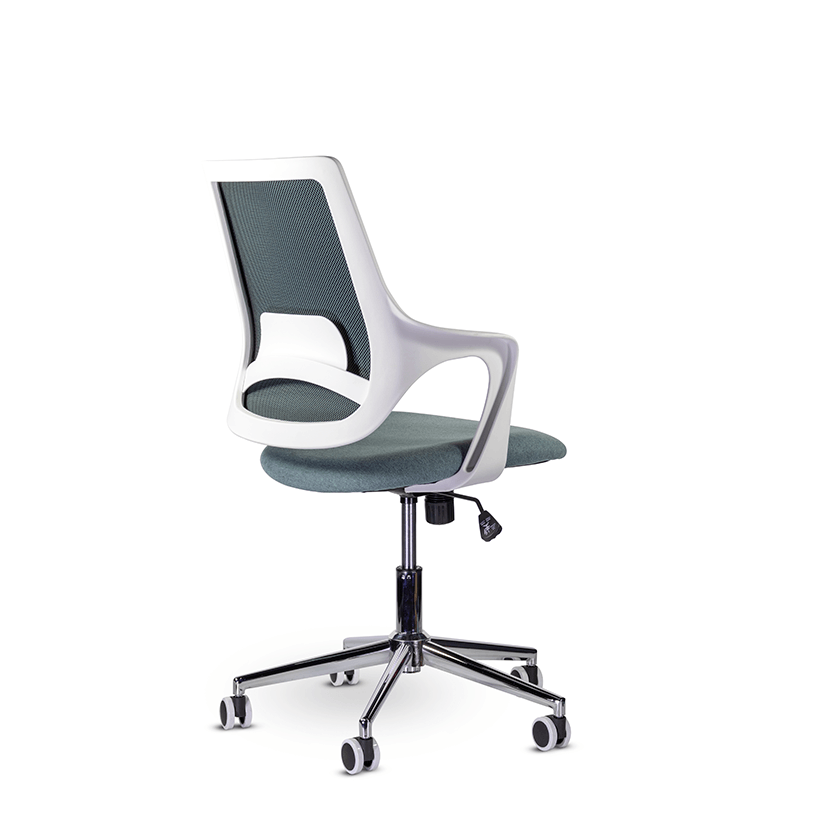 Воздушность конструкции выполнена за счет парящей спинки. При этом жесткость конструкции достигается за счет крепких подлокотников, являющихся частью каркаса.