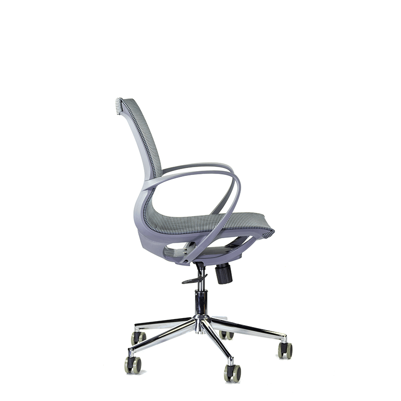 Уникальность состоит в капсульной конструкции кресла. По всему каркасу натянута прочная сетка цвета “мокрого асфальта”, которая придает изящный вид. Кресло оператора отлично подойдет для “открытого” офиса.