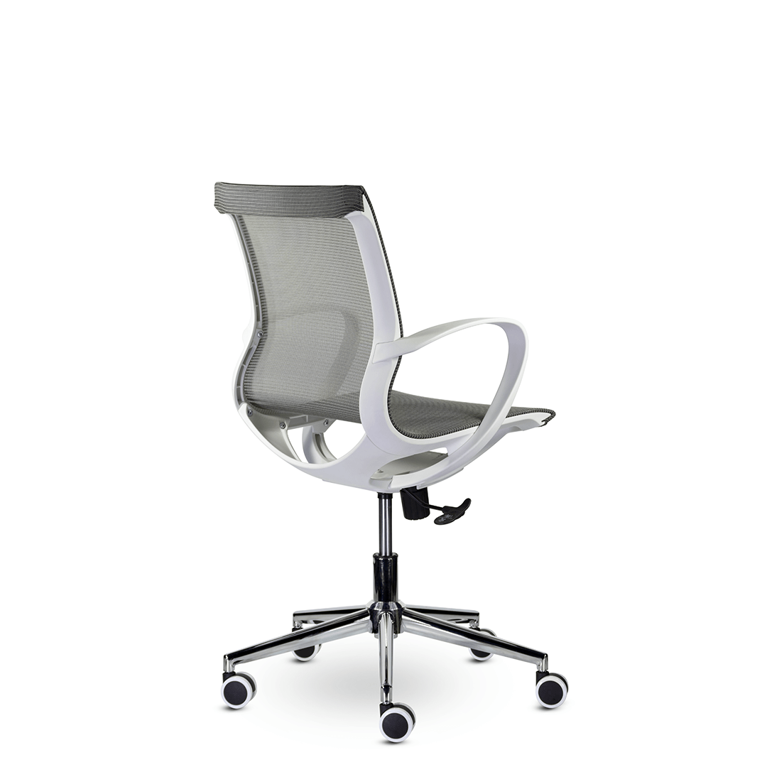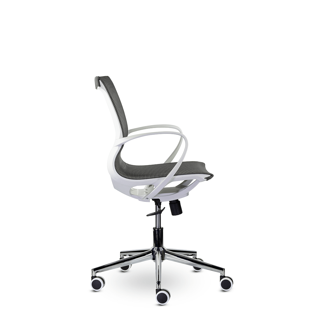 Уникальность состоит в капсульной конструкции кресла. По всему каркасу натянута прочная сетка цвета “мокрого асфальта”, которая придает изящный вид. Кресло оператора отлично подойдет для “открытого” офиса.