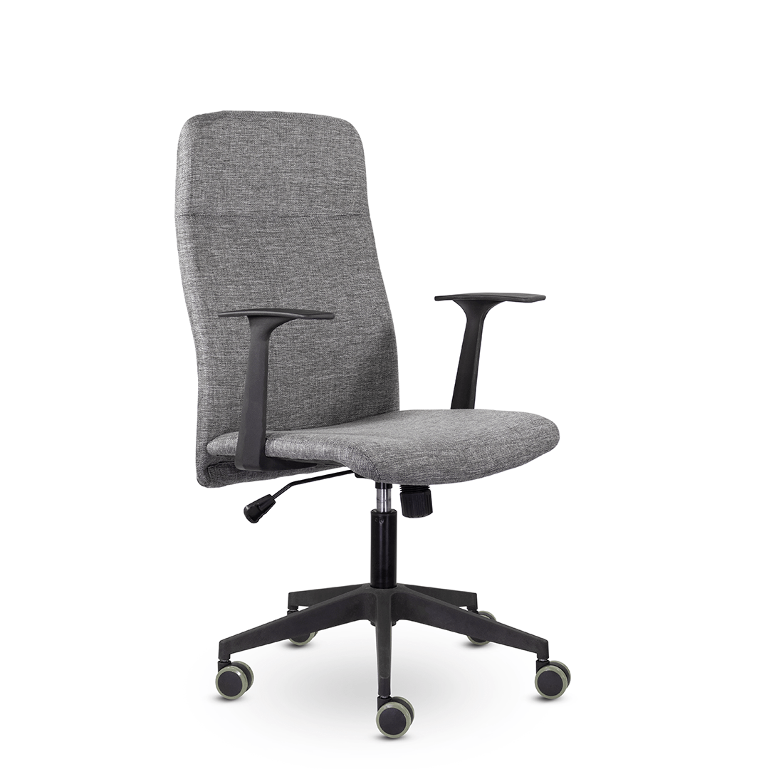 Компактное кресло имеет износостойкую обивку и удобные Т-образные подлокотники. Широкая эргономичная спинка сделают рабочий день максимально комфортным.