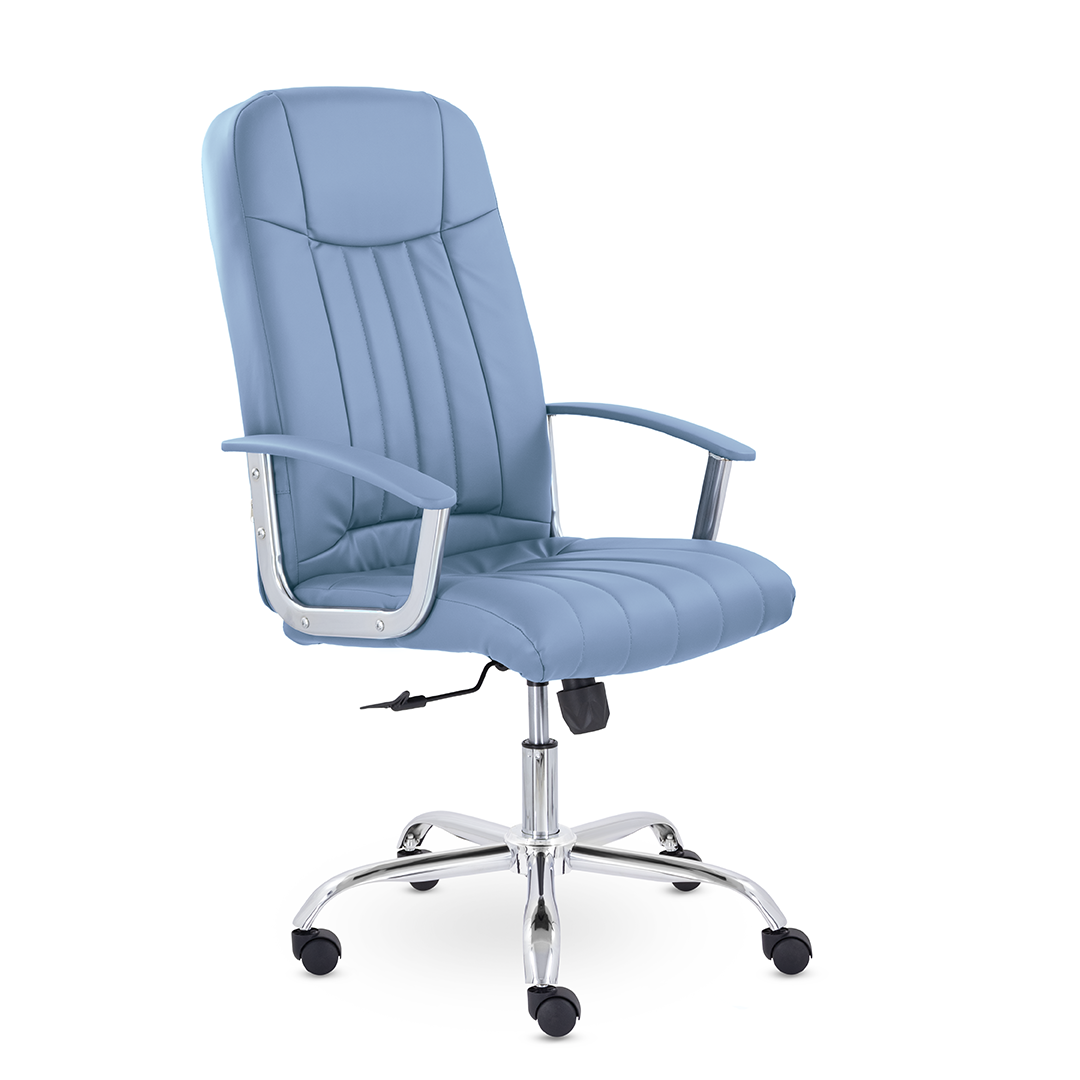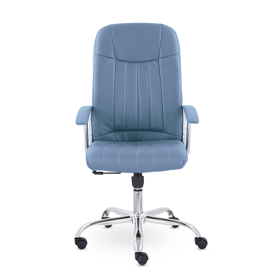 Кресло руководителя с мягкими увеличенными подушками. Широкая эргономичная спинка имеет две горизонтальные прострочки, которые отделяют подголовник от основной части спинки. Благодаря глубокому сиденью, в кресле будет удобно человеку среднего и высокого роста. Длинные хромированные подлокотники способствуют комфортной посадке в кресле.
