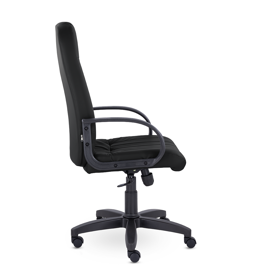 Кресло руководителя с мягкими увеличенными подушками. Широкая эргономичная спинка имеет две горизонтальные прострочки, которые отделяют подголовник от основной части спинки. Благодаря глубокому сиденью, в кресле будет удобно человеку среднего и высокого роста. Длинные пластиковые подлокотники способствуют комфортной посадке в кресле.