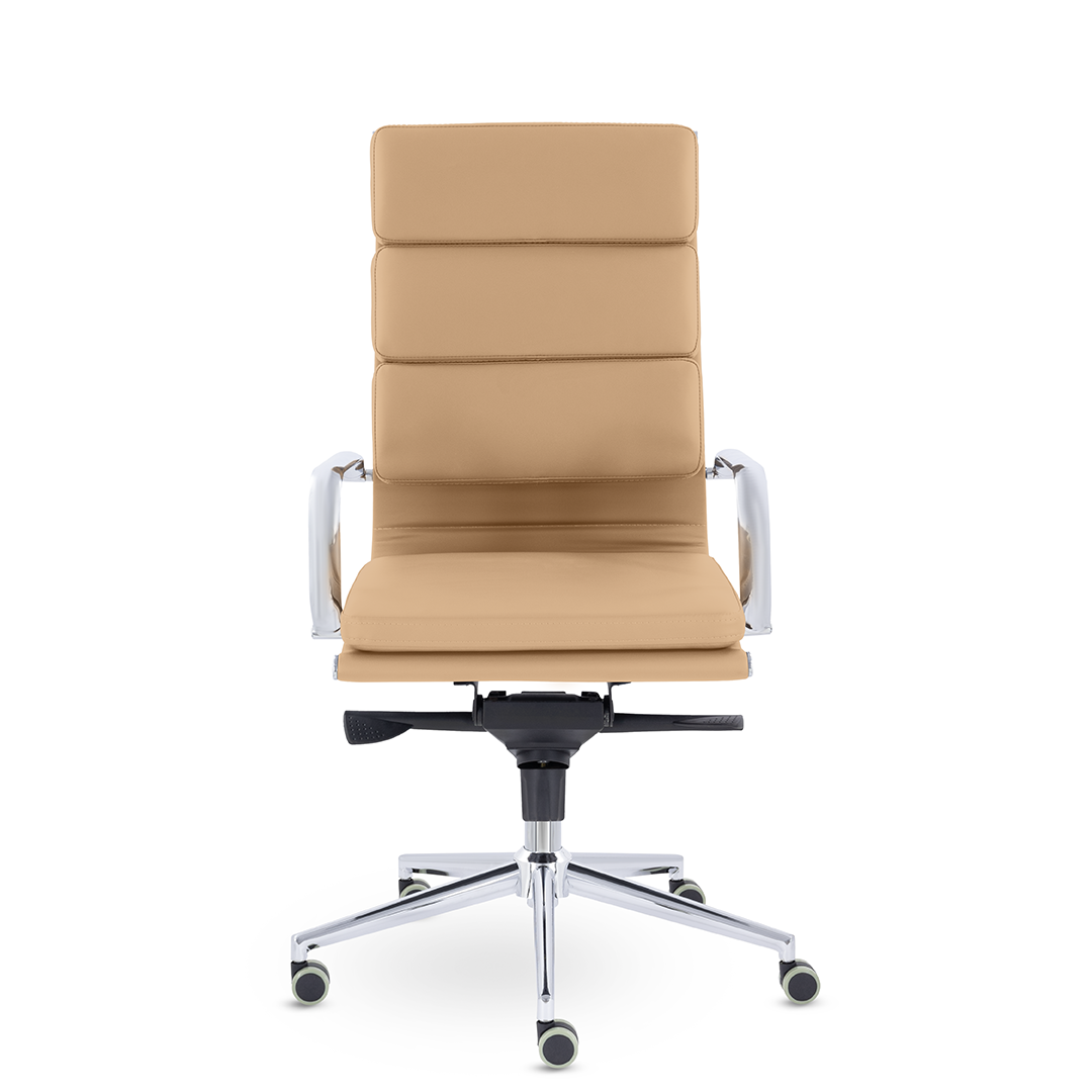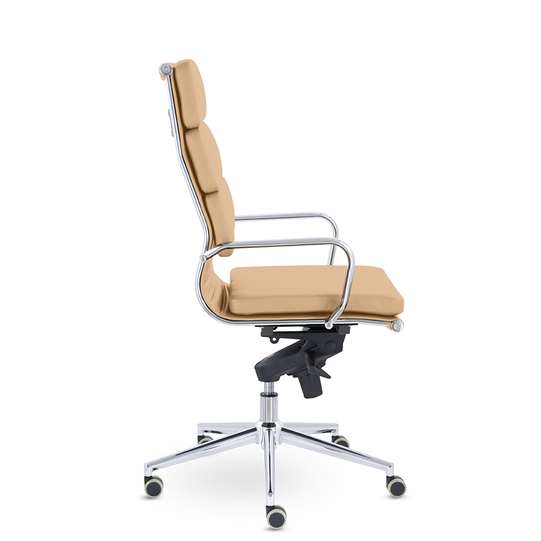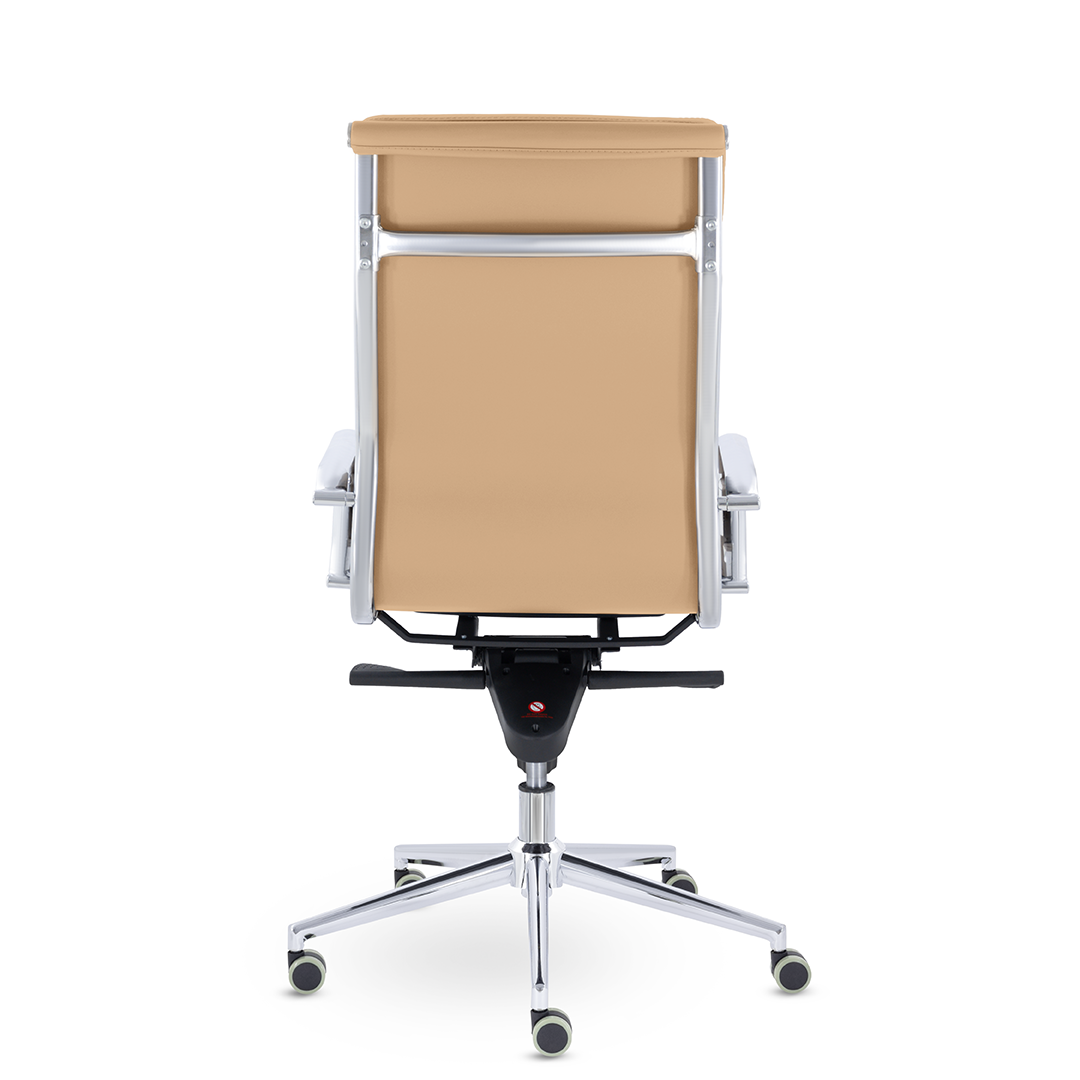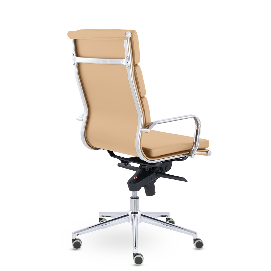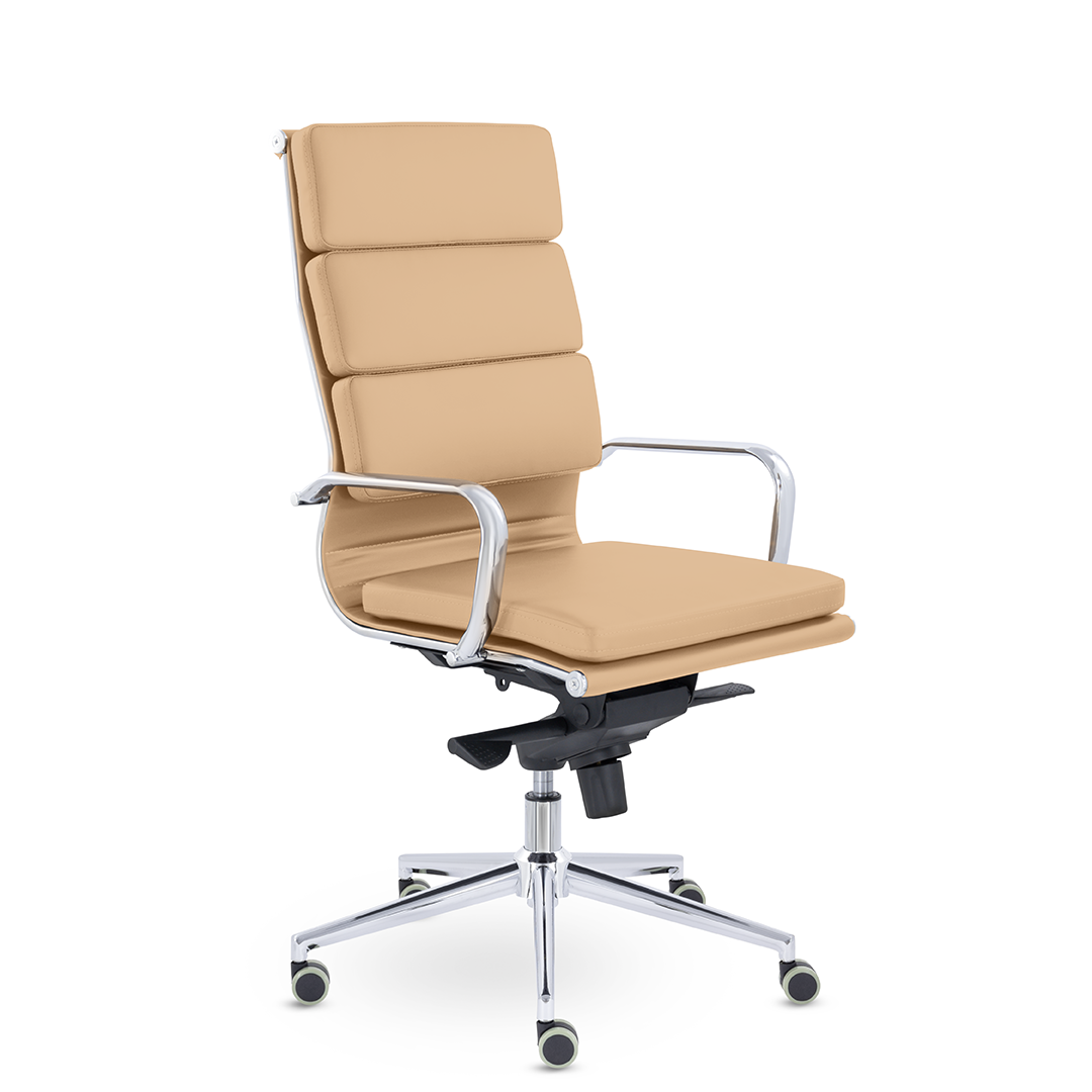 Кресло руководителя в современном металлическом каркасе. Комфорт создается благодаря мягким элементам спинки и сиденья. Зеркальный хромированный каркас и узкая крестовина задают современный стиль. Кресло отлично смотрится в строгих и открытых кабинетах. Механизм качания - мультиблок.