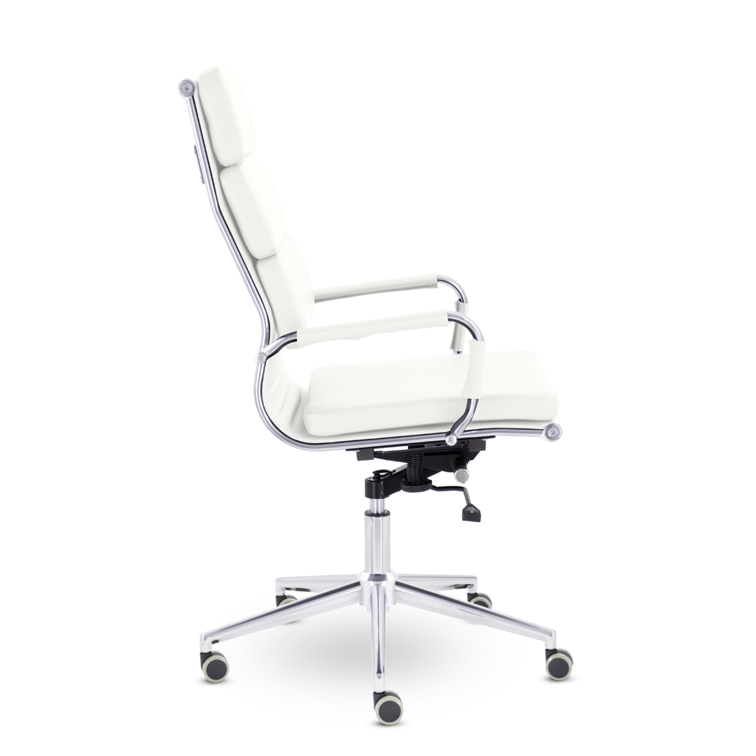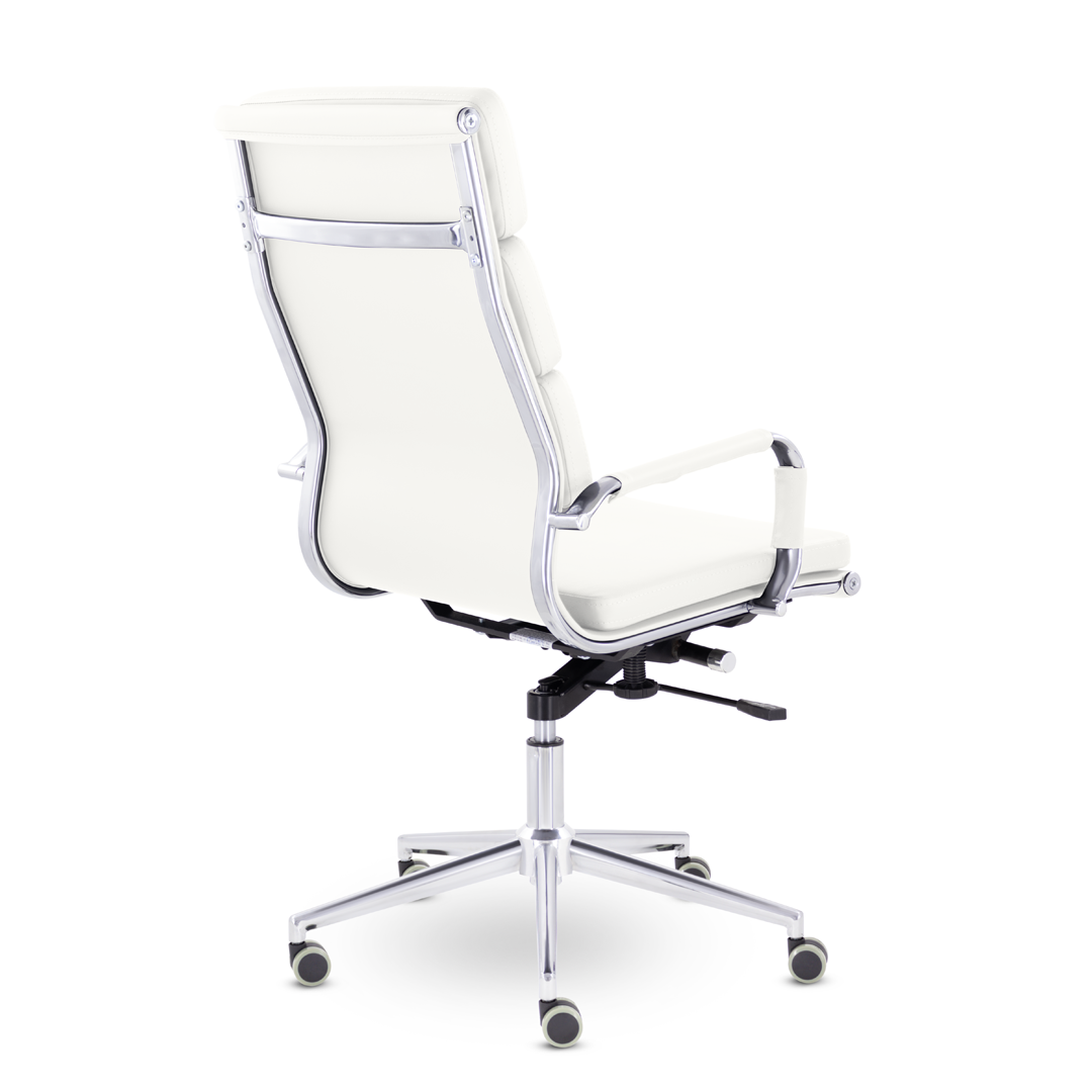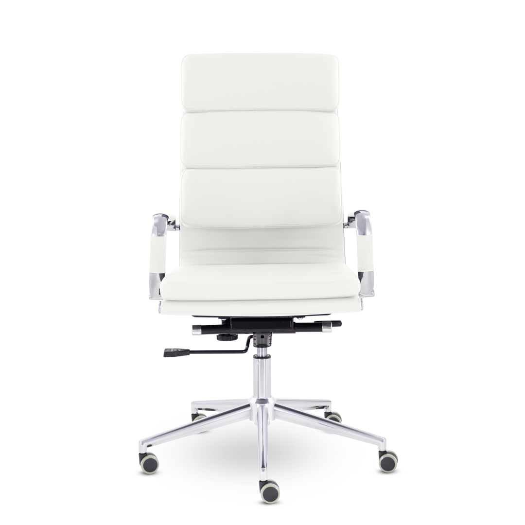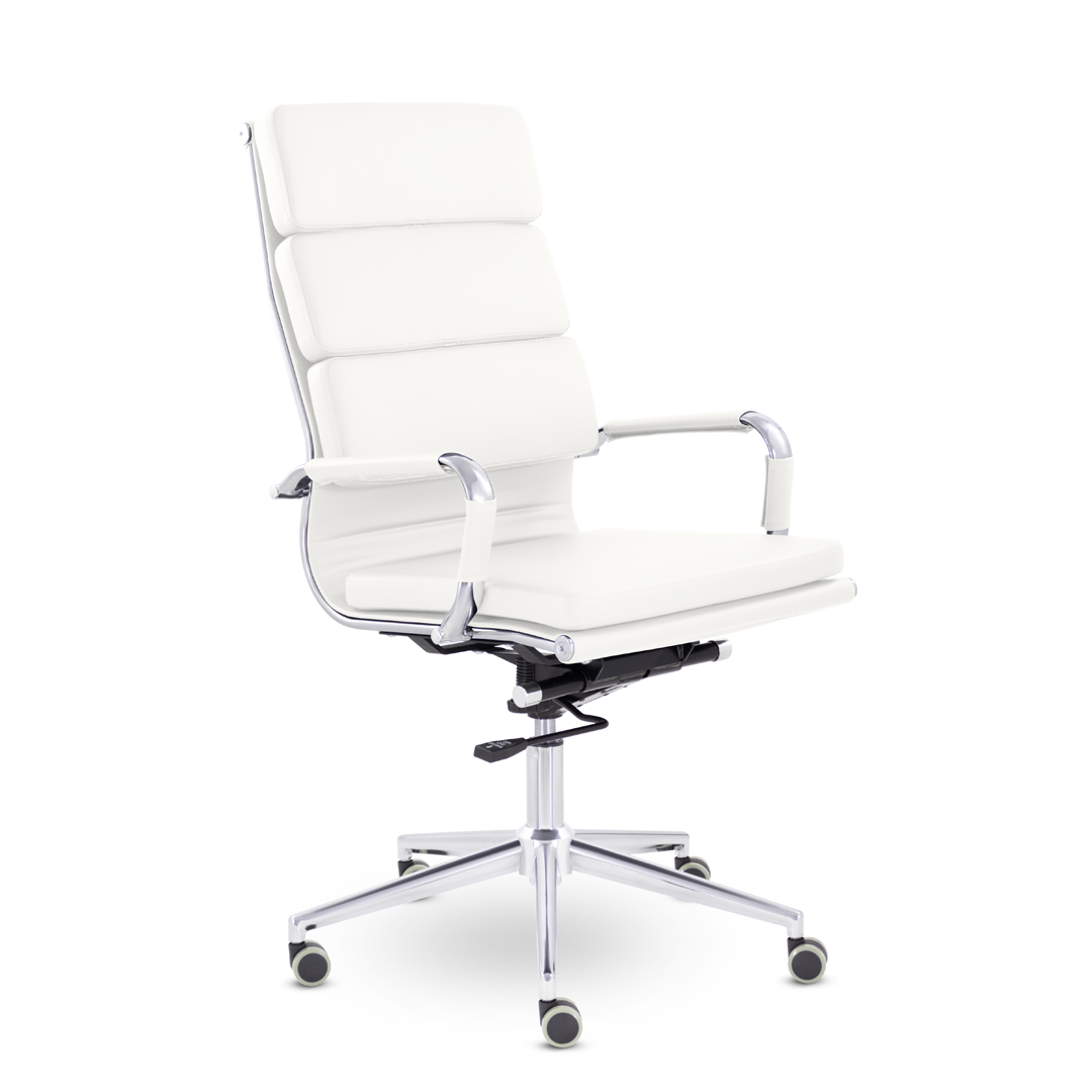 Кресло руководителя в современном металлическом каркасе. Комфорт создается благодаря мягким элементам спинки и сиденья. Зеркальный хромированный каркас и узкая крестовина задают современный стиль креслу. Кресло отлично смотрится в строгих и открытых кабинетах.