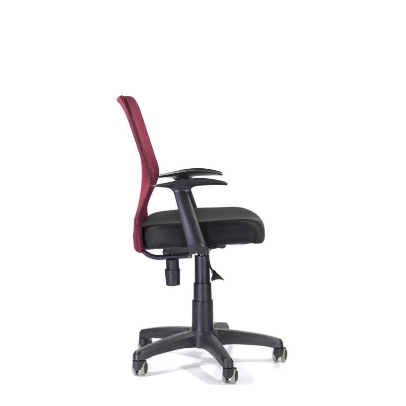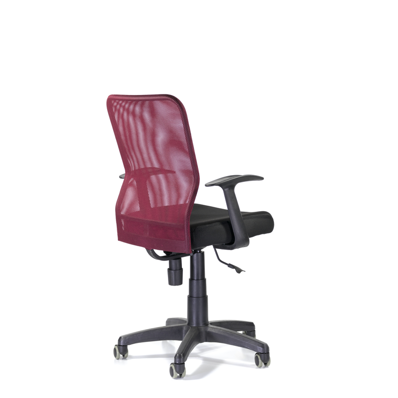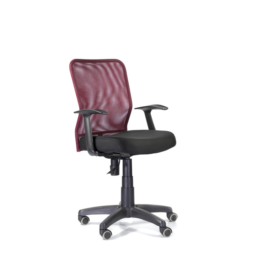 Кресло обладает широкой эргономичной спинкой, обтянутой сеткой, удвоенной мягкой подушкой сидения, которая обшита износостойкой тканью. Также кресло отличается своей компактностью и подойдет для небольших помещений. Т-образные подлокотники обеспечат поддержку рук.