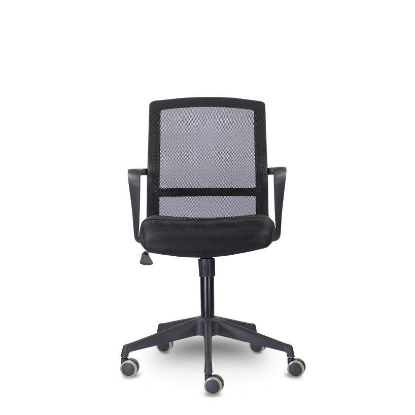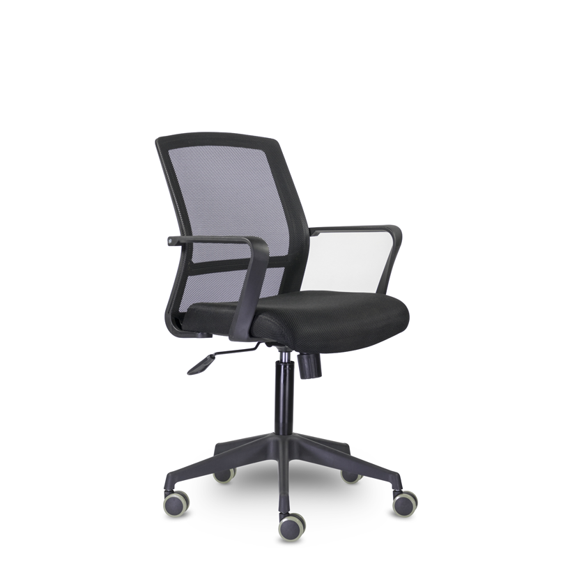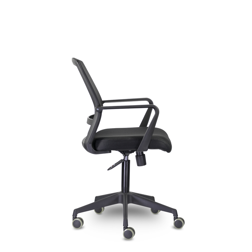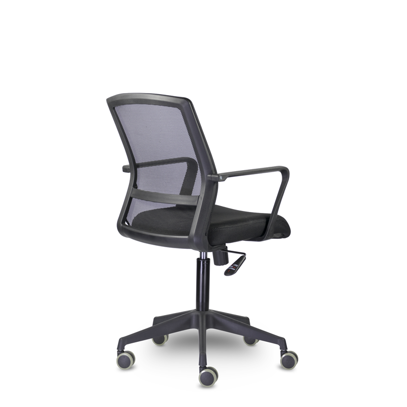 Широкая эргономичная спинка, высокий газ-лифт. Изящные формы каркаса спинки плотно скреплены с сидением через длинные пластиковые подлокотники.
