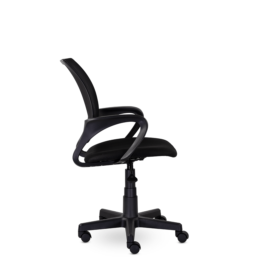Современное компактное кресло для персонала будет хорошо смотреться в открытых офисах и коворкингах. Сетчатая спинка обеспечивает оптимальную циркуляцию воздуха, что немаловажно при длительной работе. Широкие пластиковые подлокотники являются частью каркаса