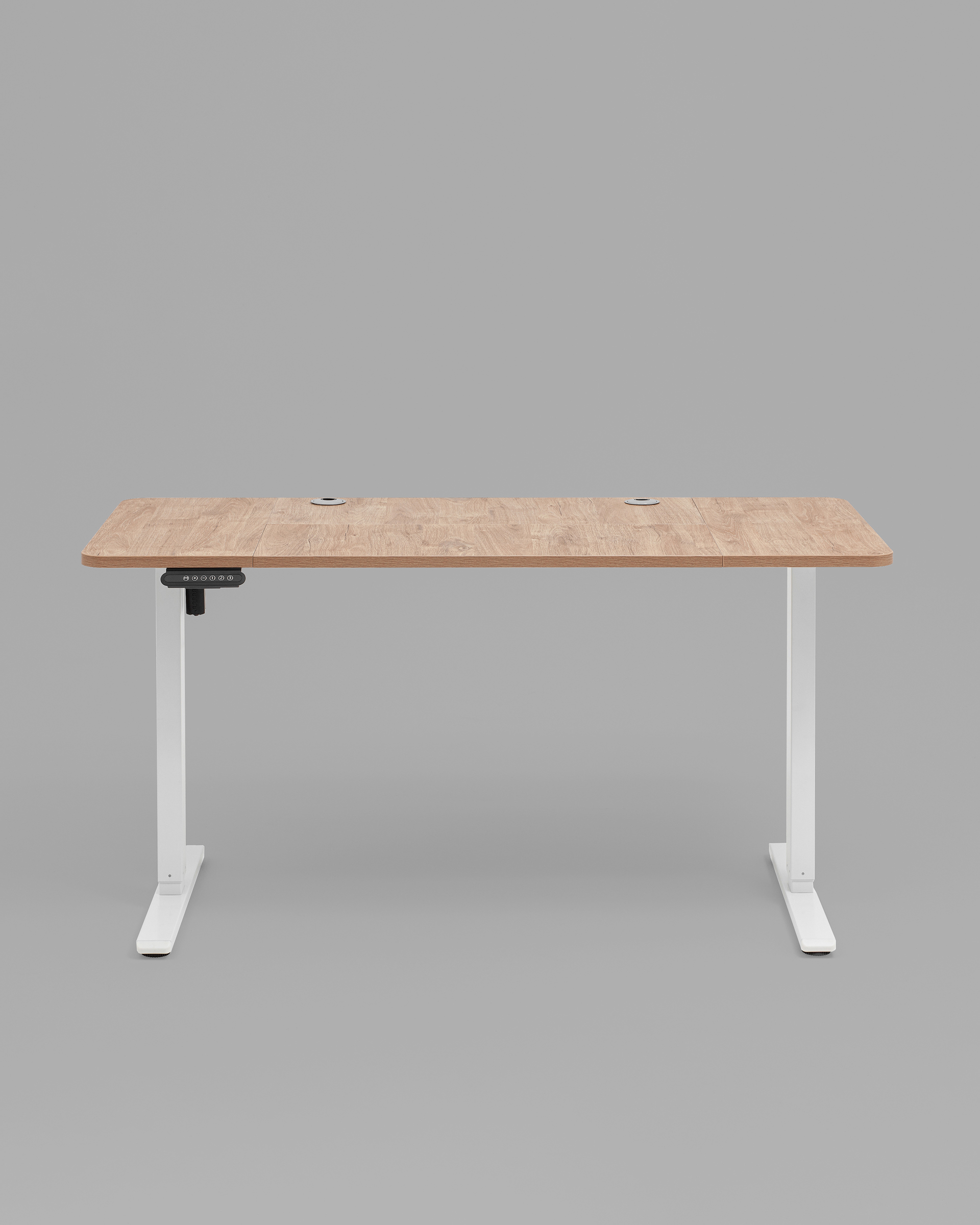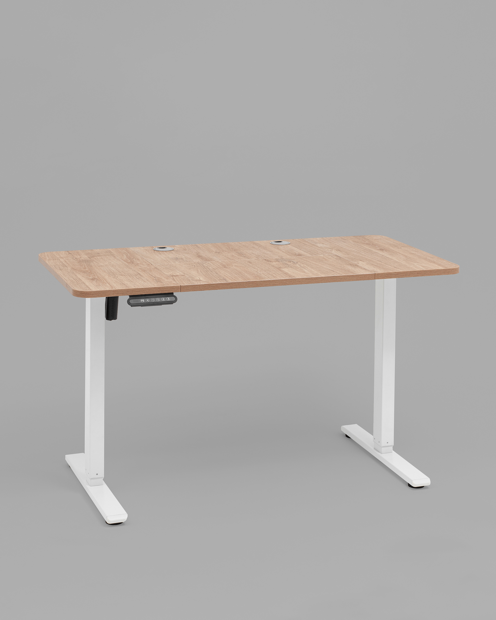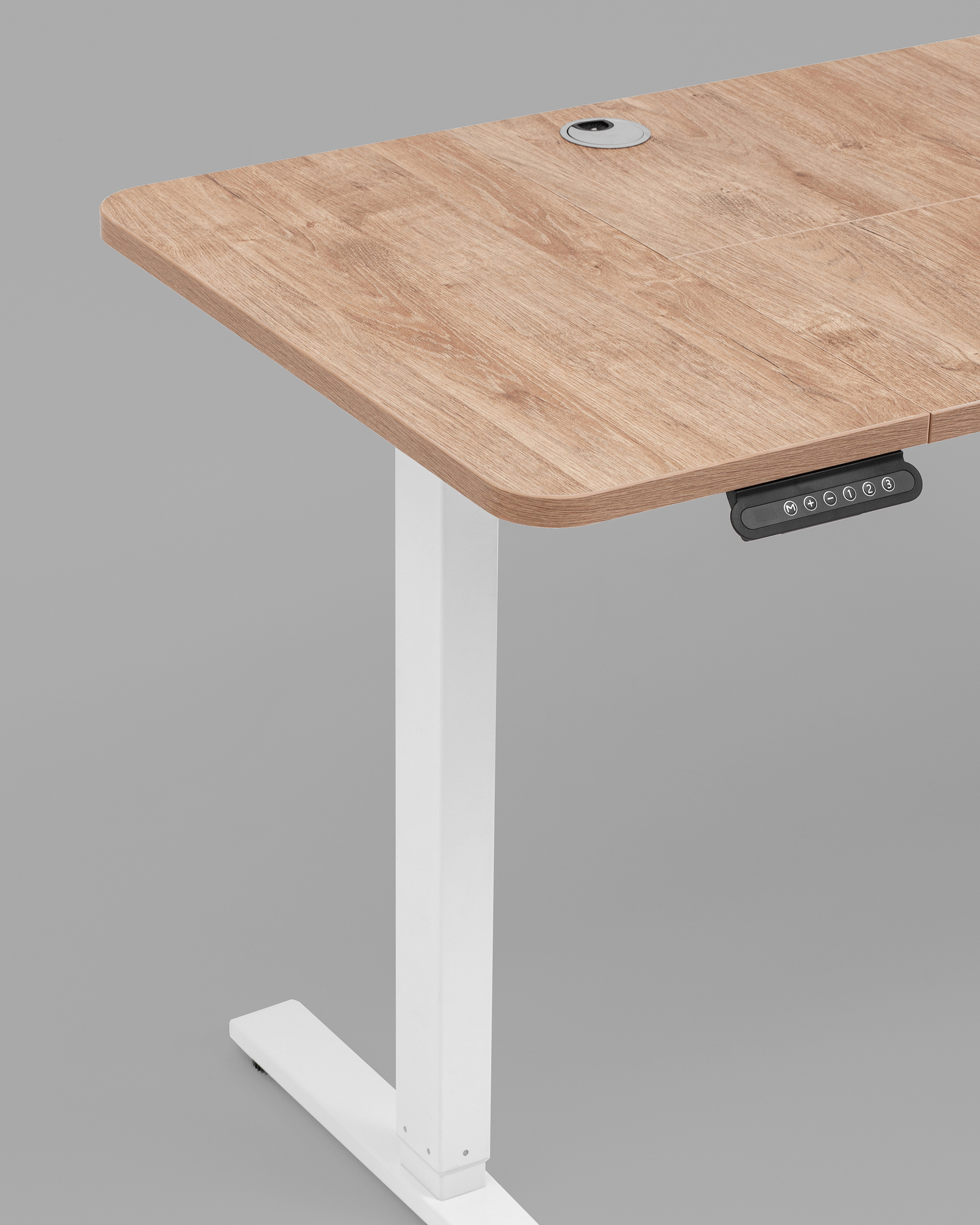 Стол с регулировкой высоты, 1 мотор, память 3 уровня высоты,белый, 120*60 см, светлое дерево