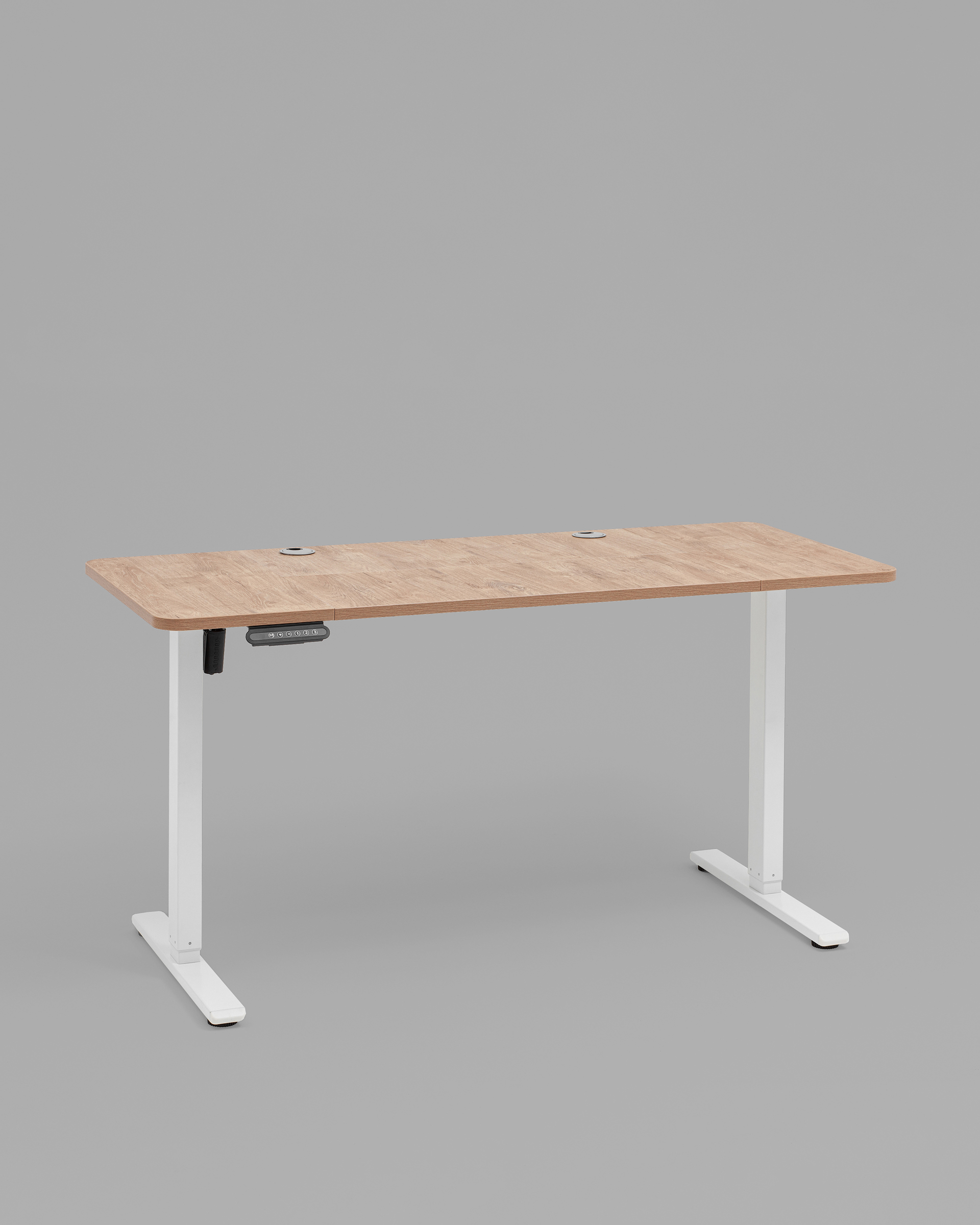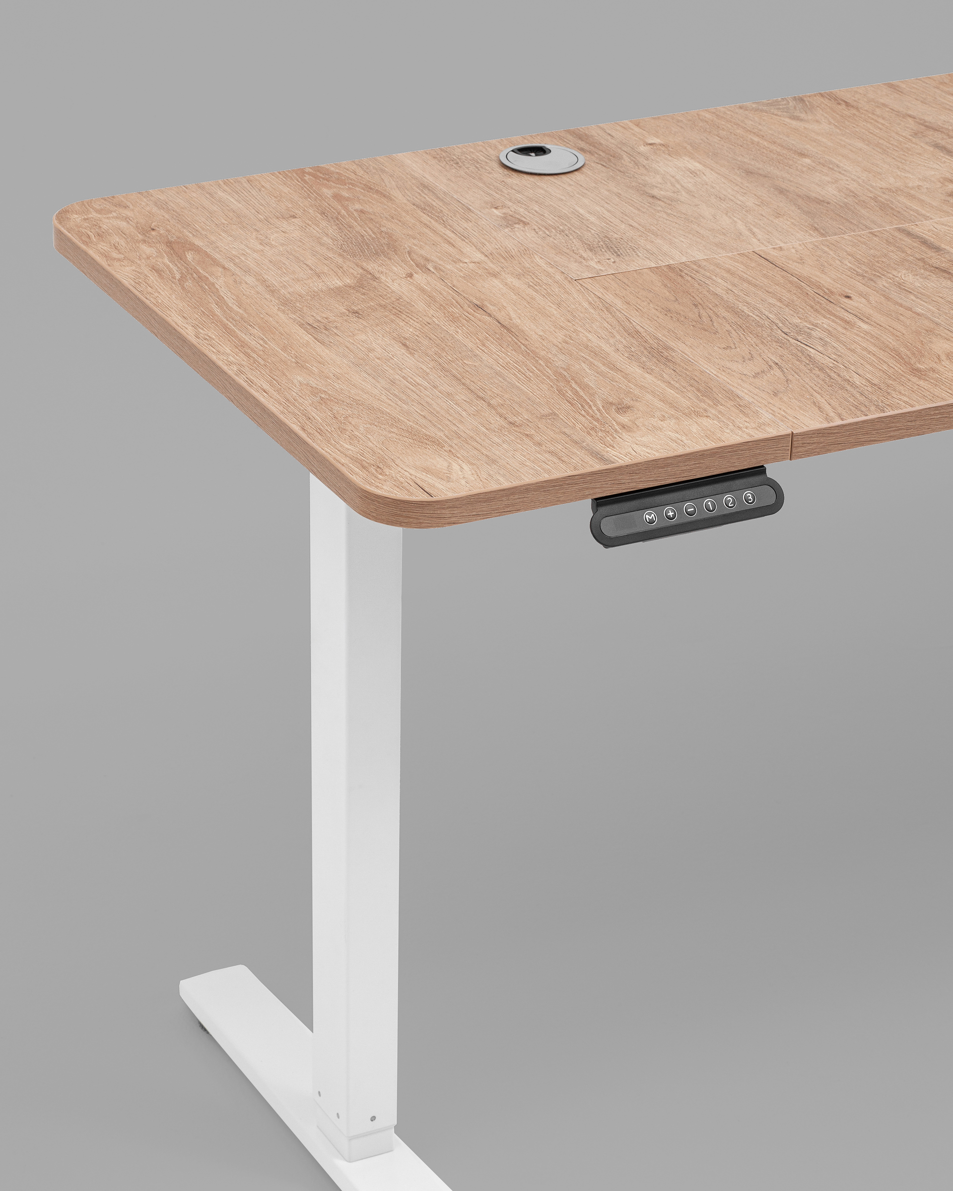Стол с регулировкой высоты, 1 мотор, память 3 уровня высоты,белый, 140*60 см, светлое дерево
