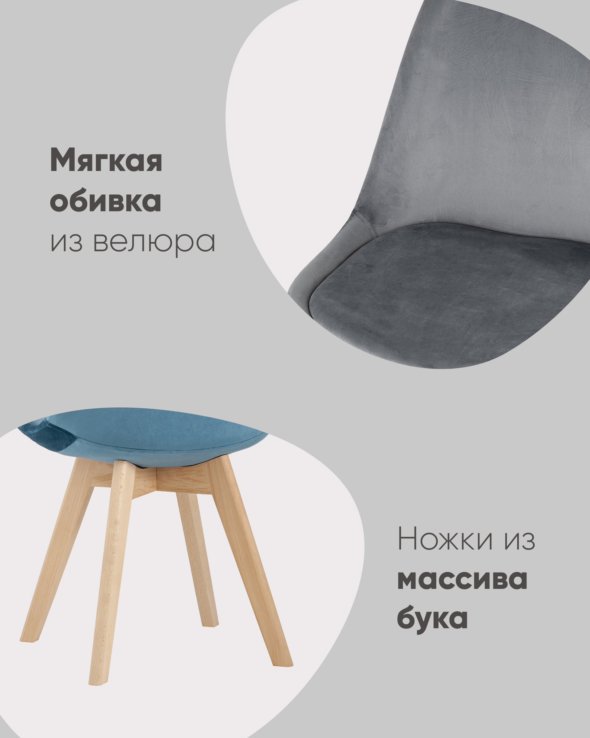 Стул обеденный FRANKFURT обивка велюр цвет синий деревянные ножки