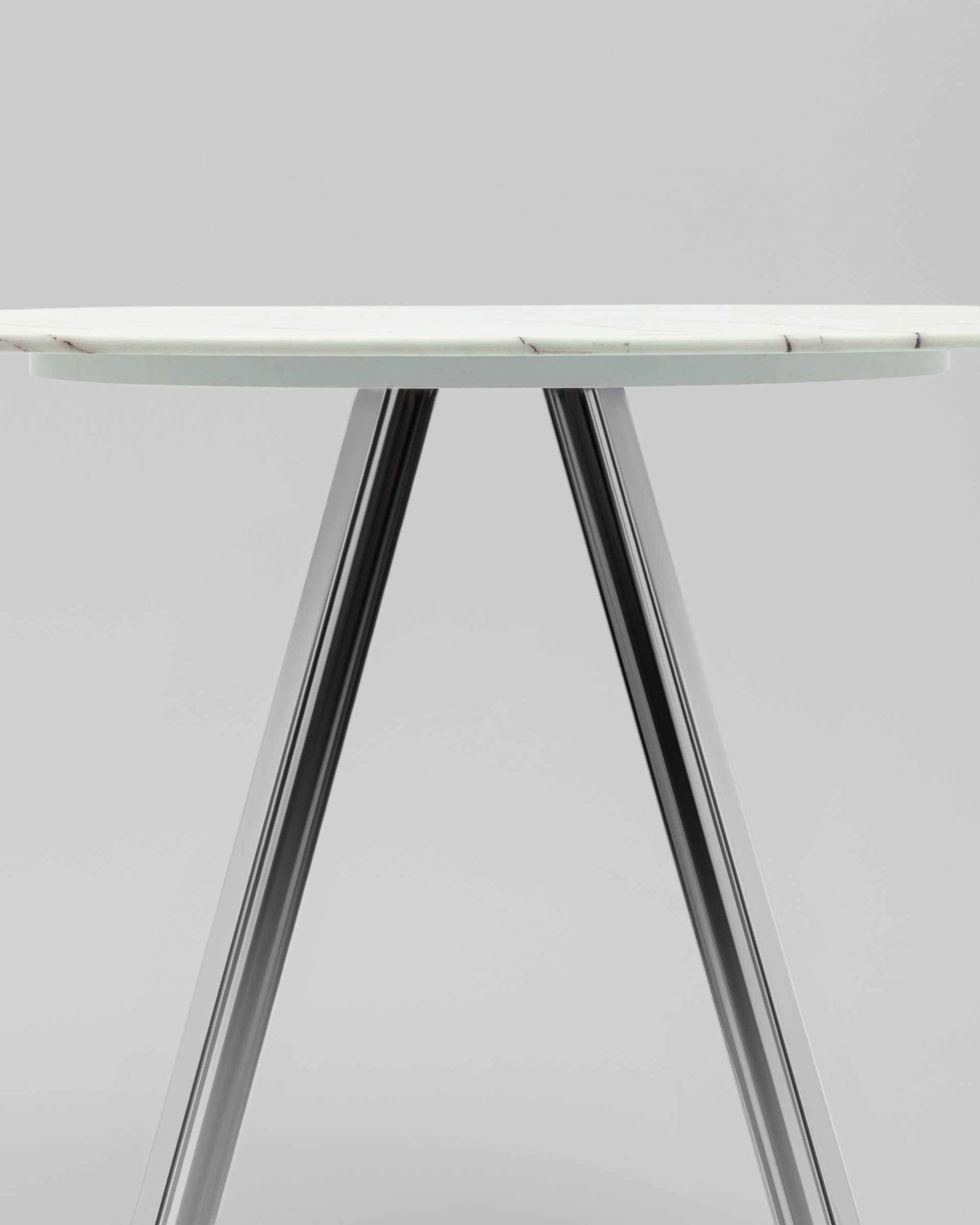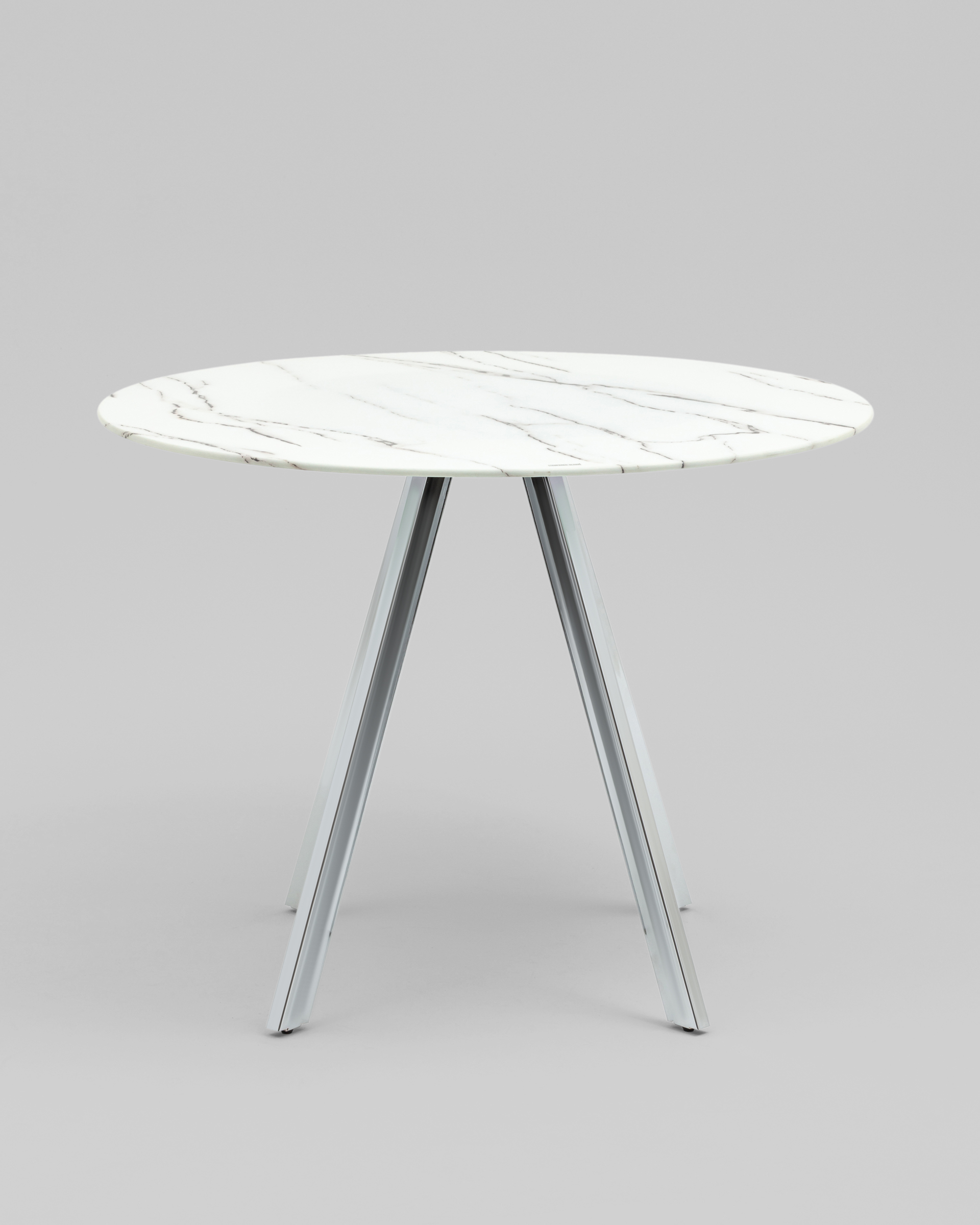 Стол обеденный Хьюстон круглый, стеклянный столешница белая с рисунком под мрамор