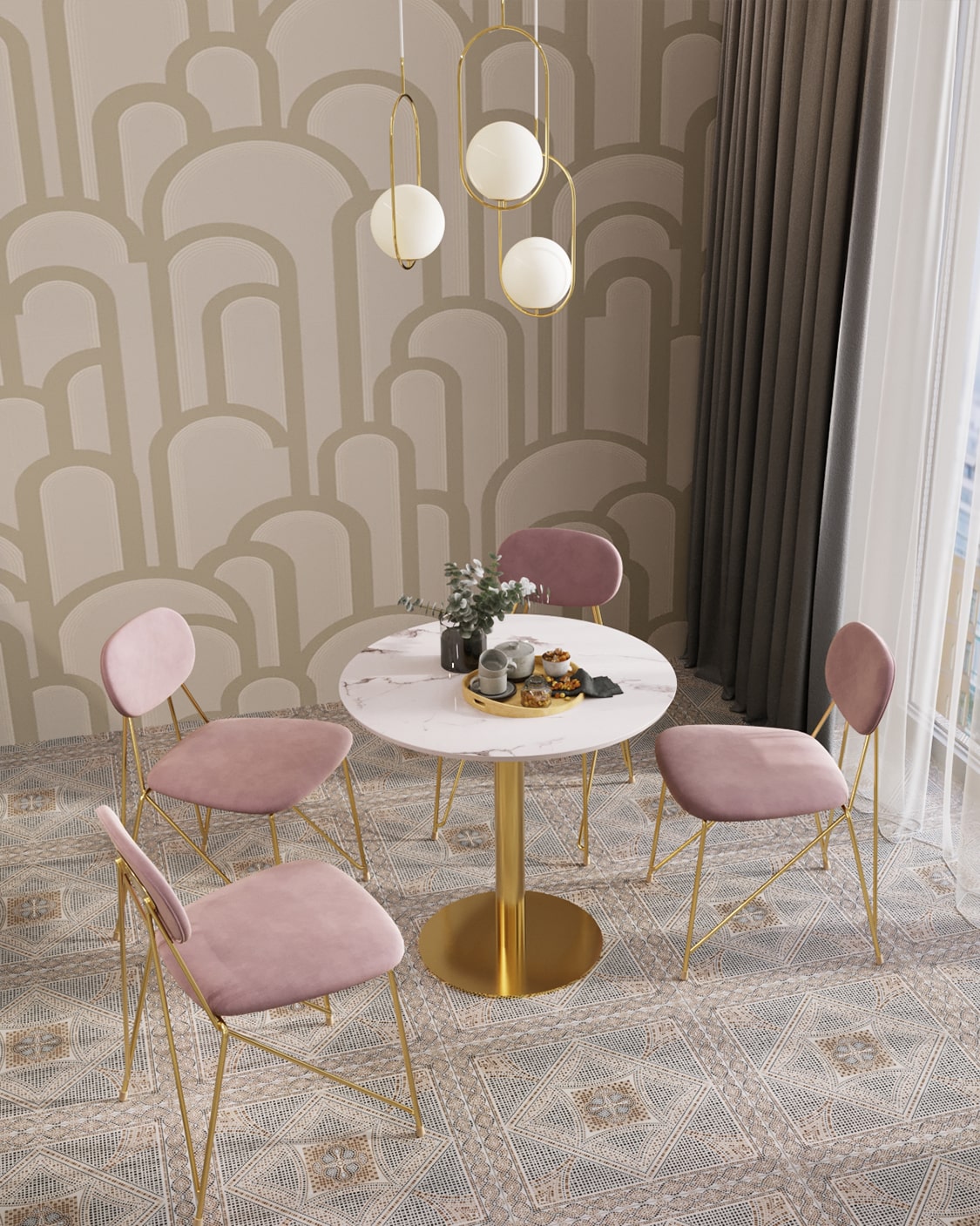 Stool Group обеденный Толедо D80 мрамор столешница МДФ керамика ножка металлическая золото