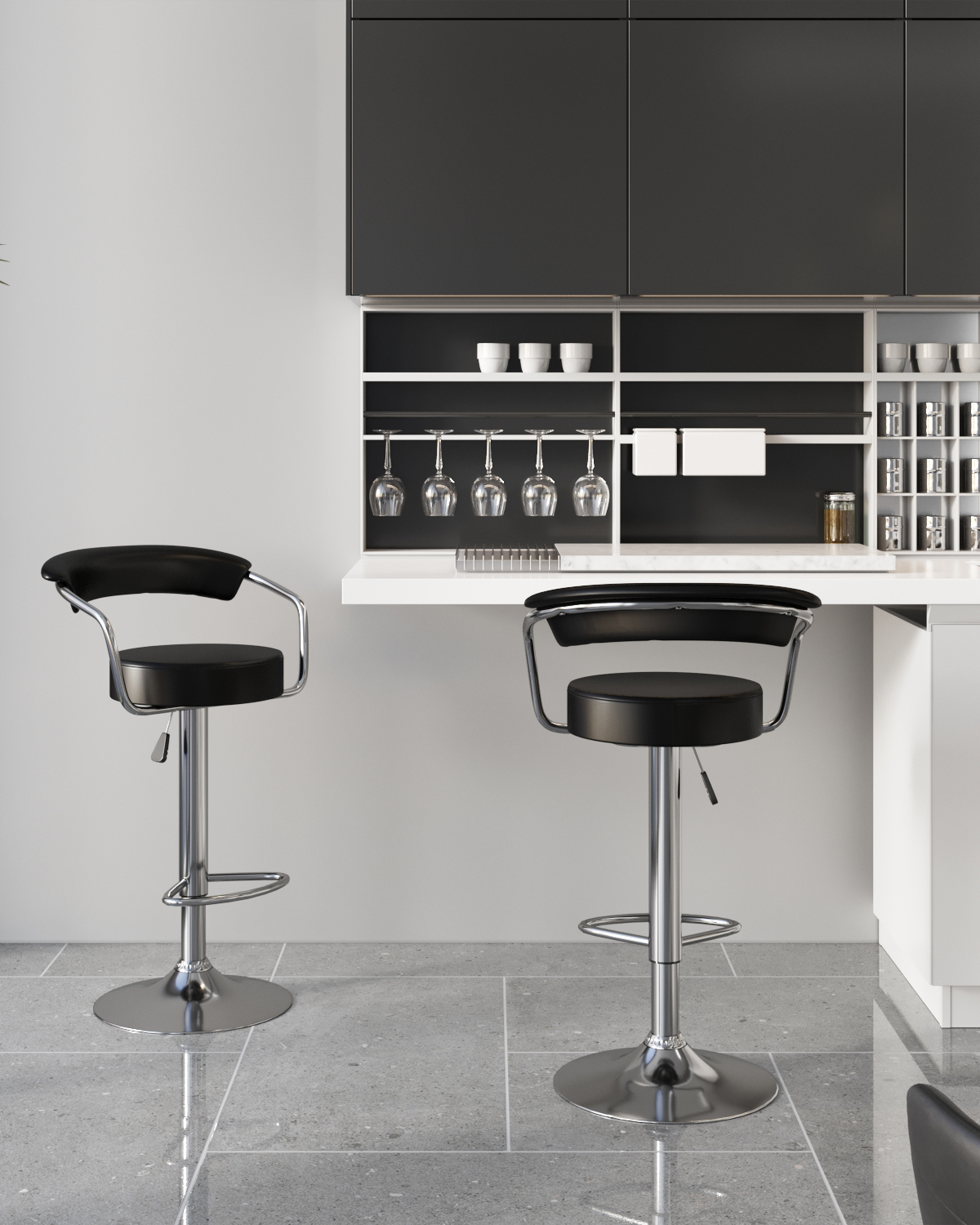 Стул Stool Group барный Орион черный, кожа PU, каркас с подножкой из хрома