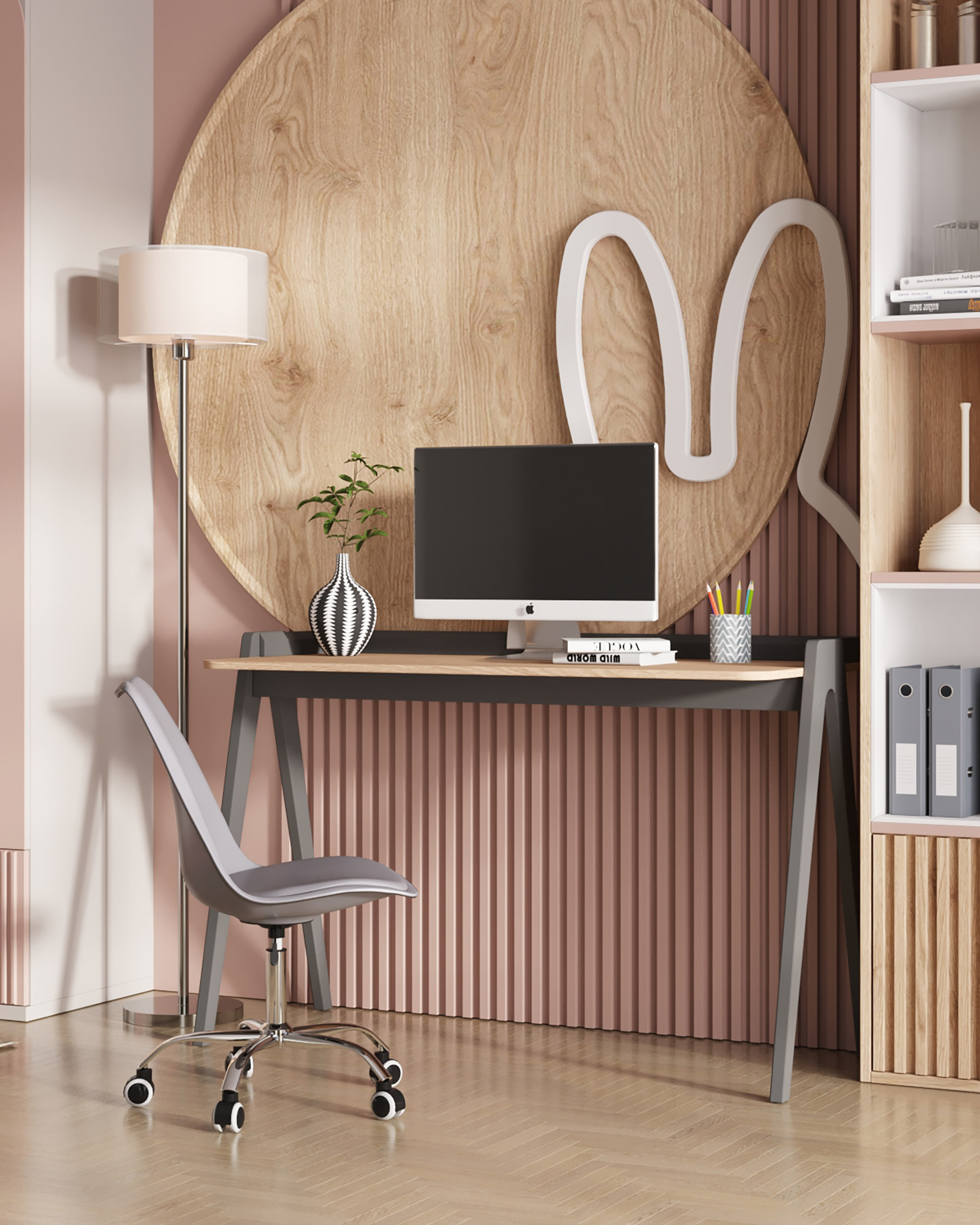 Стол письменный Pyramid 118*53 светлое дерево/серый каркас из массива дерева