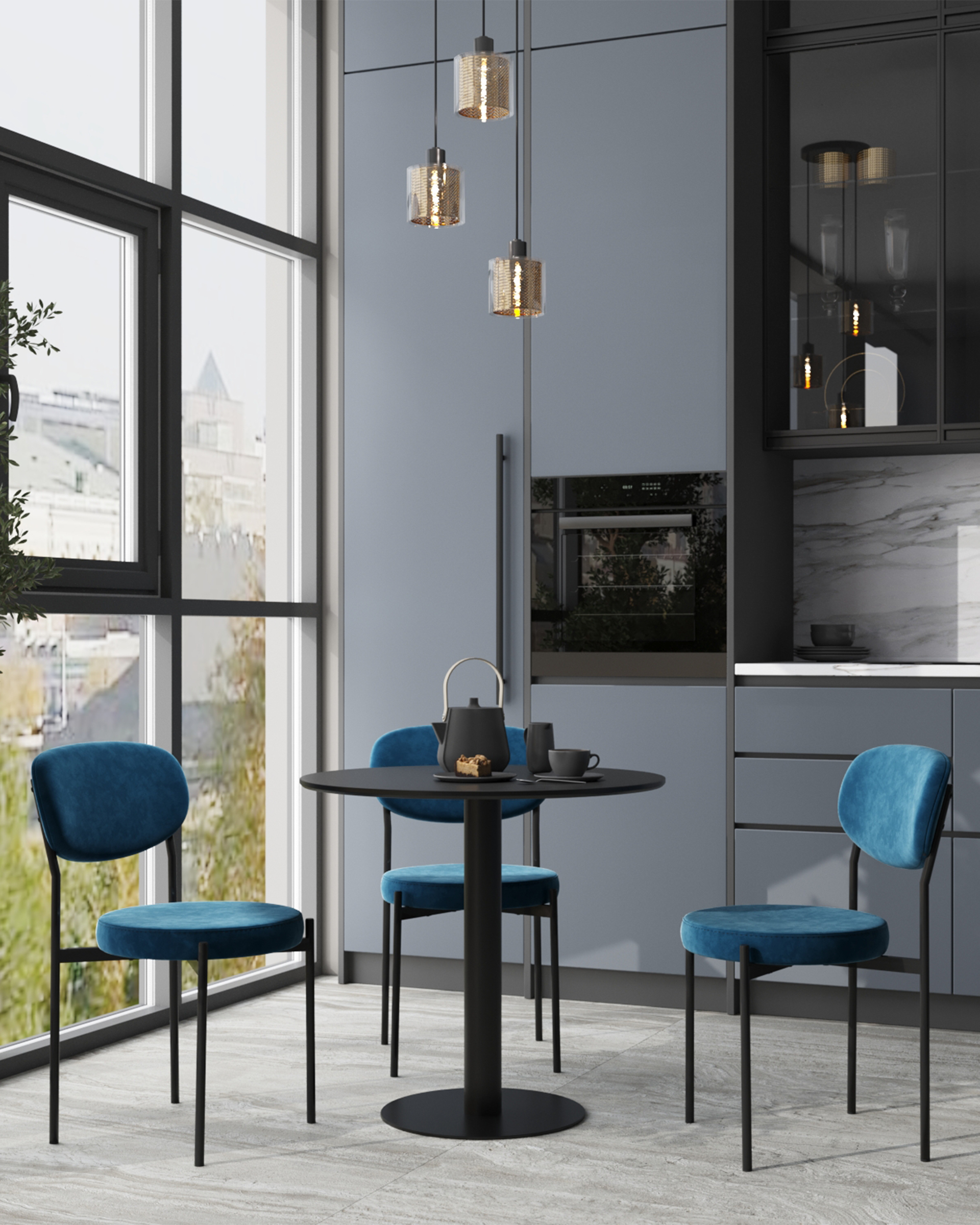 Стол обеденный Толедо D80 черный столешница МДФ ножка металлическая черная