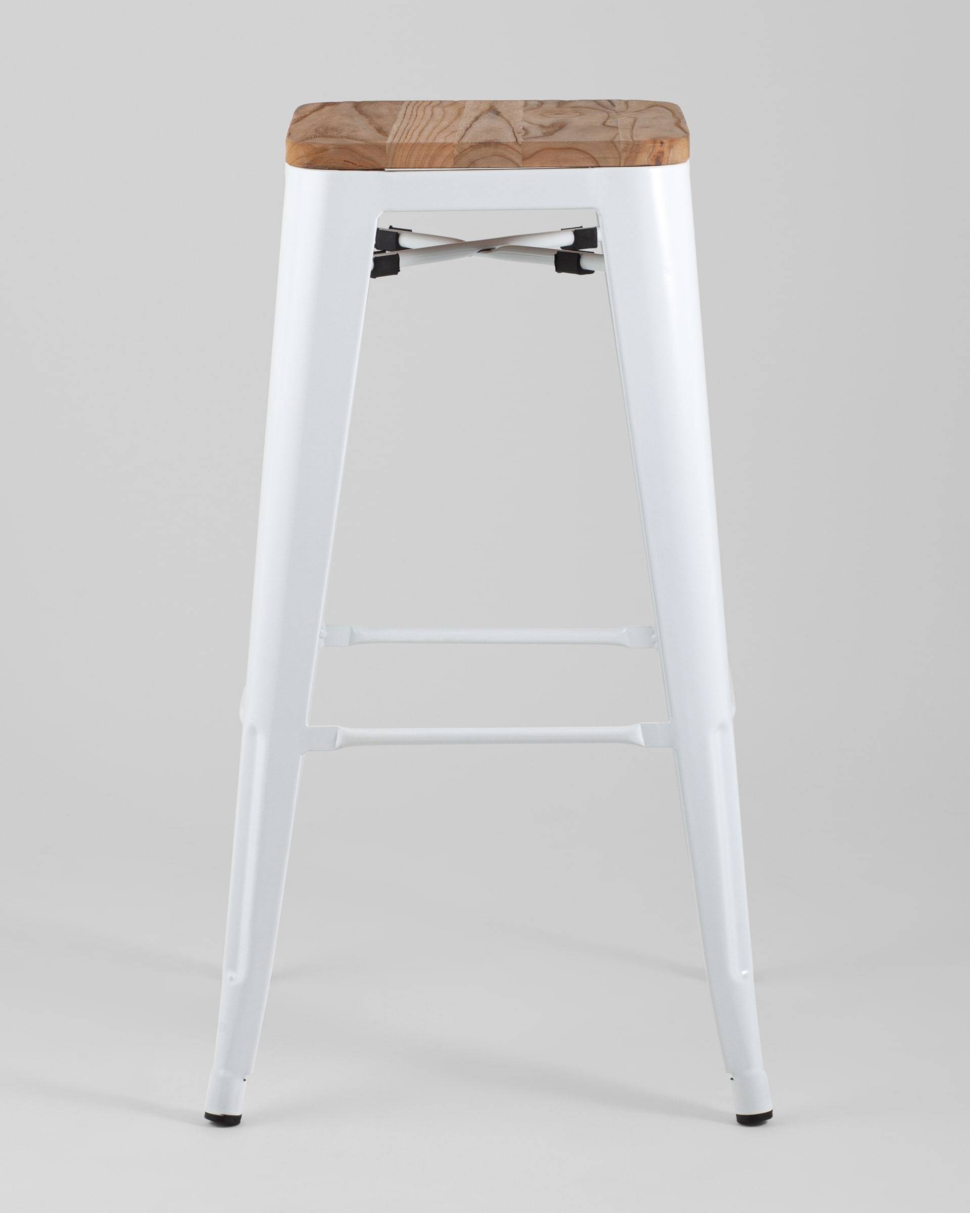 Стул Stool Group барный TOLIX WOOD белый глянцевый, оцинкованный металл с порошковым напылением, сиденье из натурального дерева