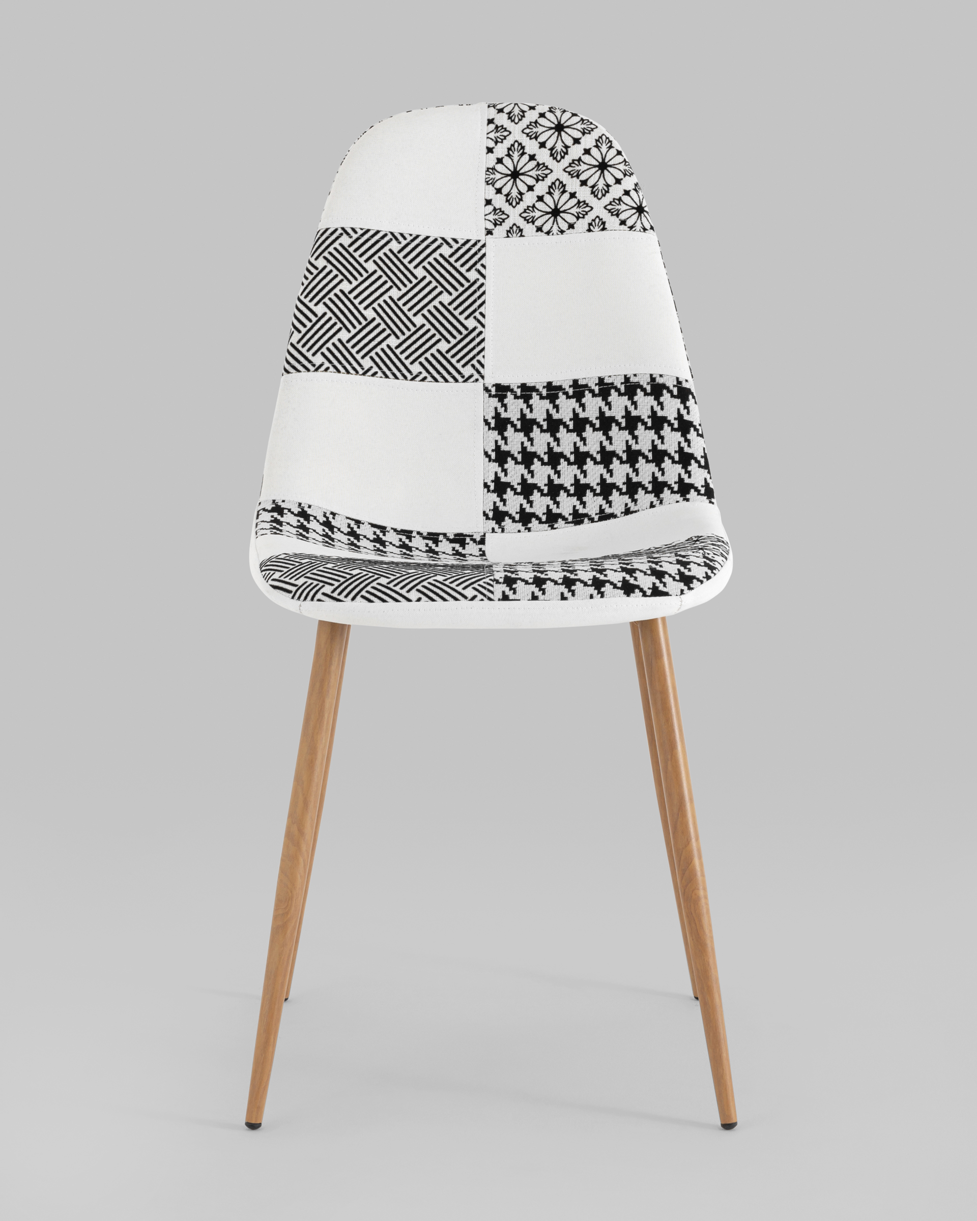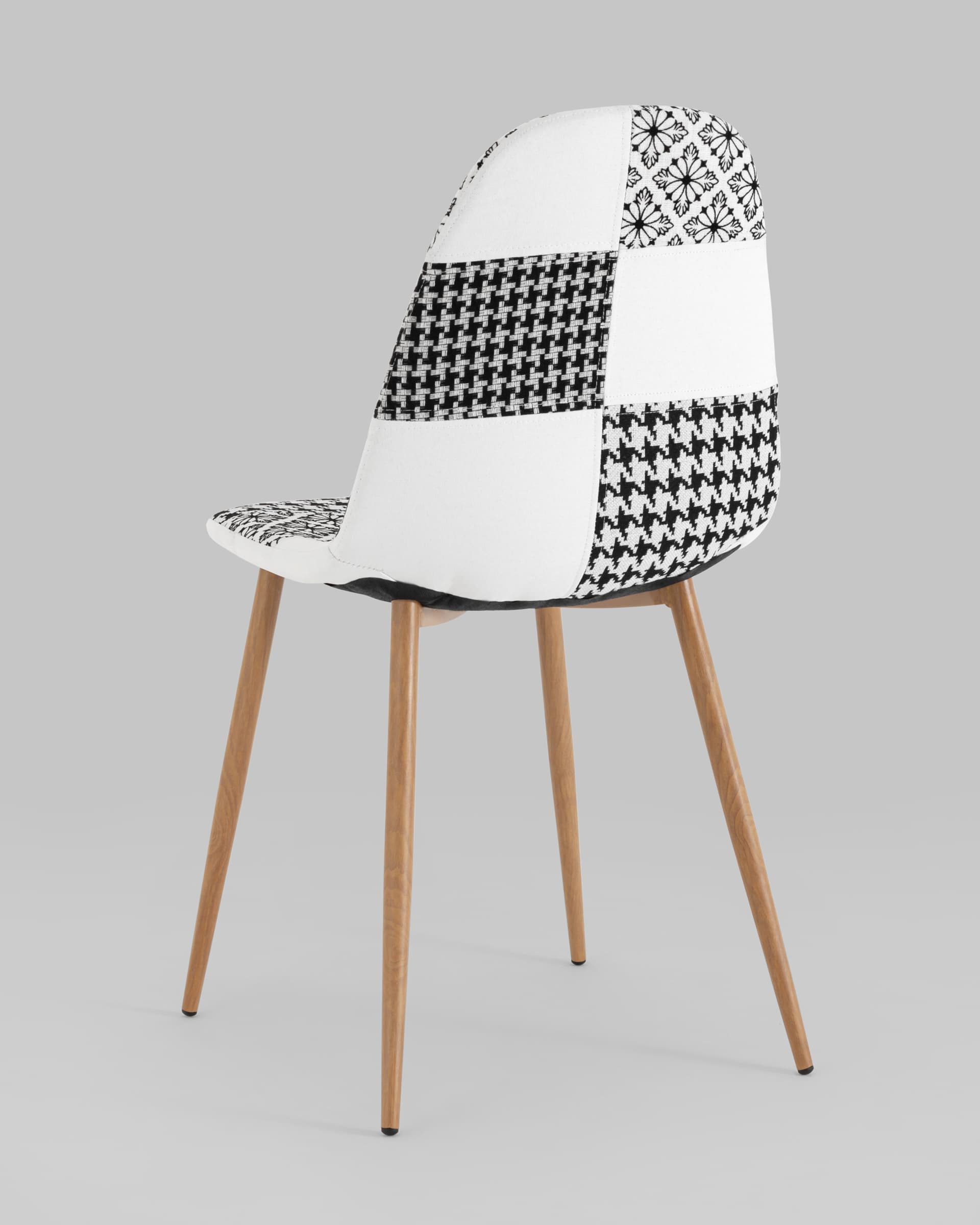 Стул Валенсия SN пэчворк черно-белый, обивка ткань ножки металл с принтом под дерево