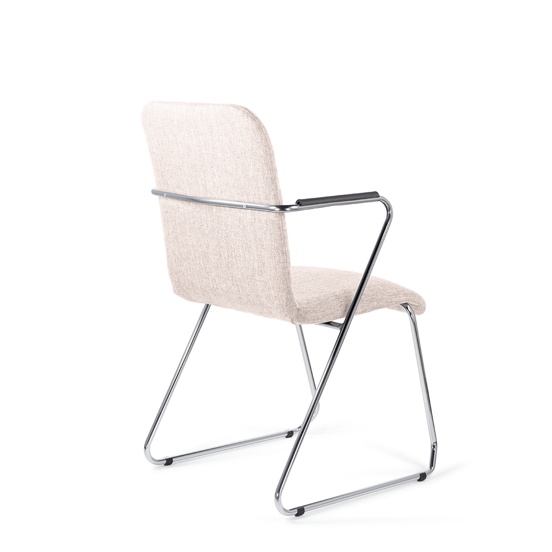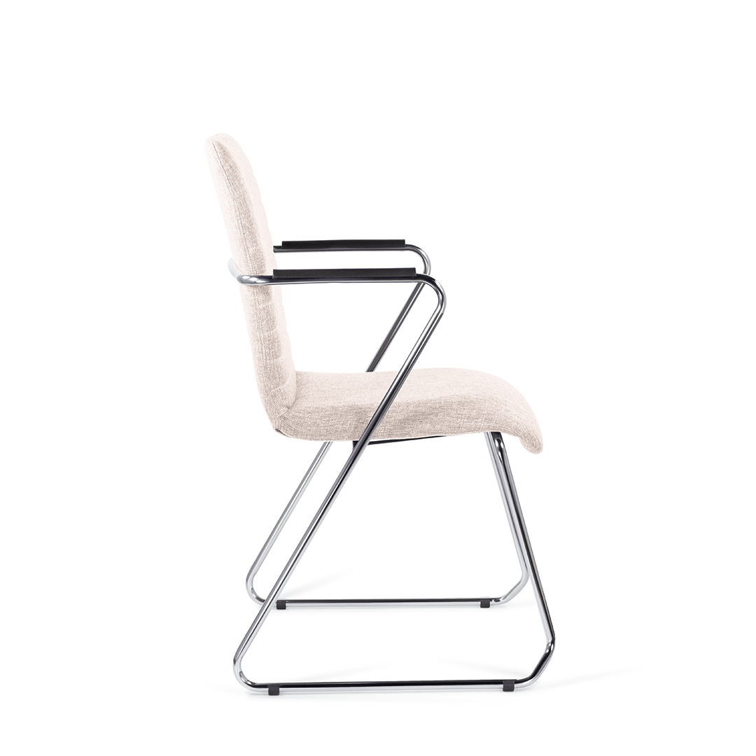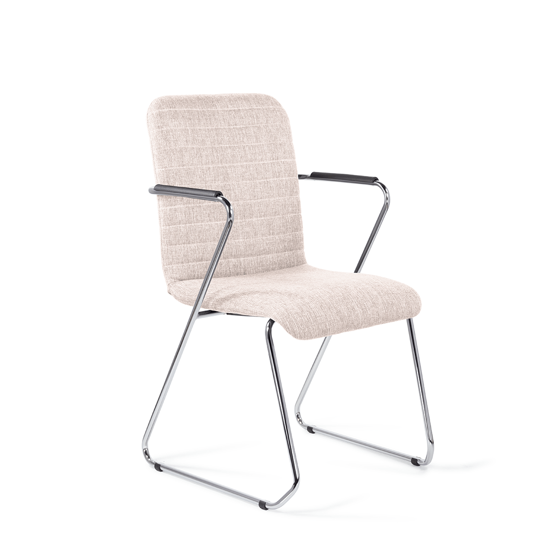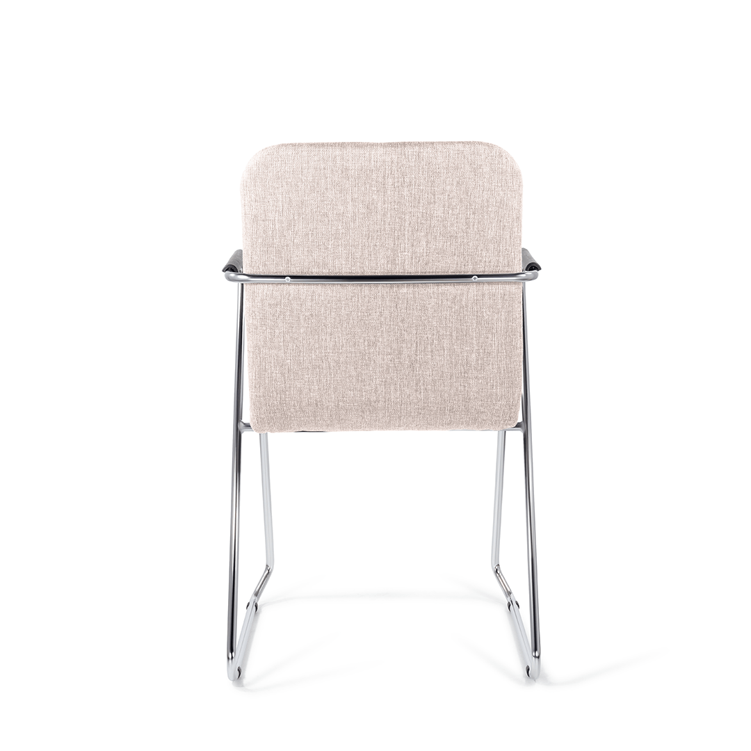 Уникальный каркас из металла и узкие подлокотники с небольшими накладками придают конструкции легкость и прочность. Горизонтальные строчки на спинке подчеркивают элегантный внешний вид. Хромированный каркас выдерживает до 120 кг.