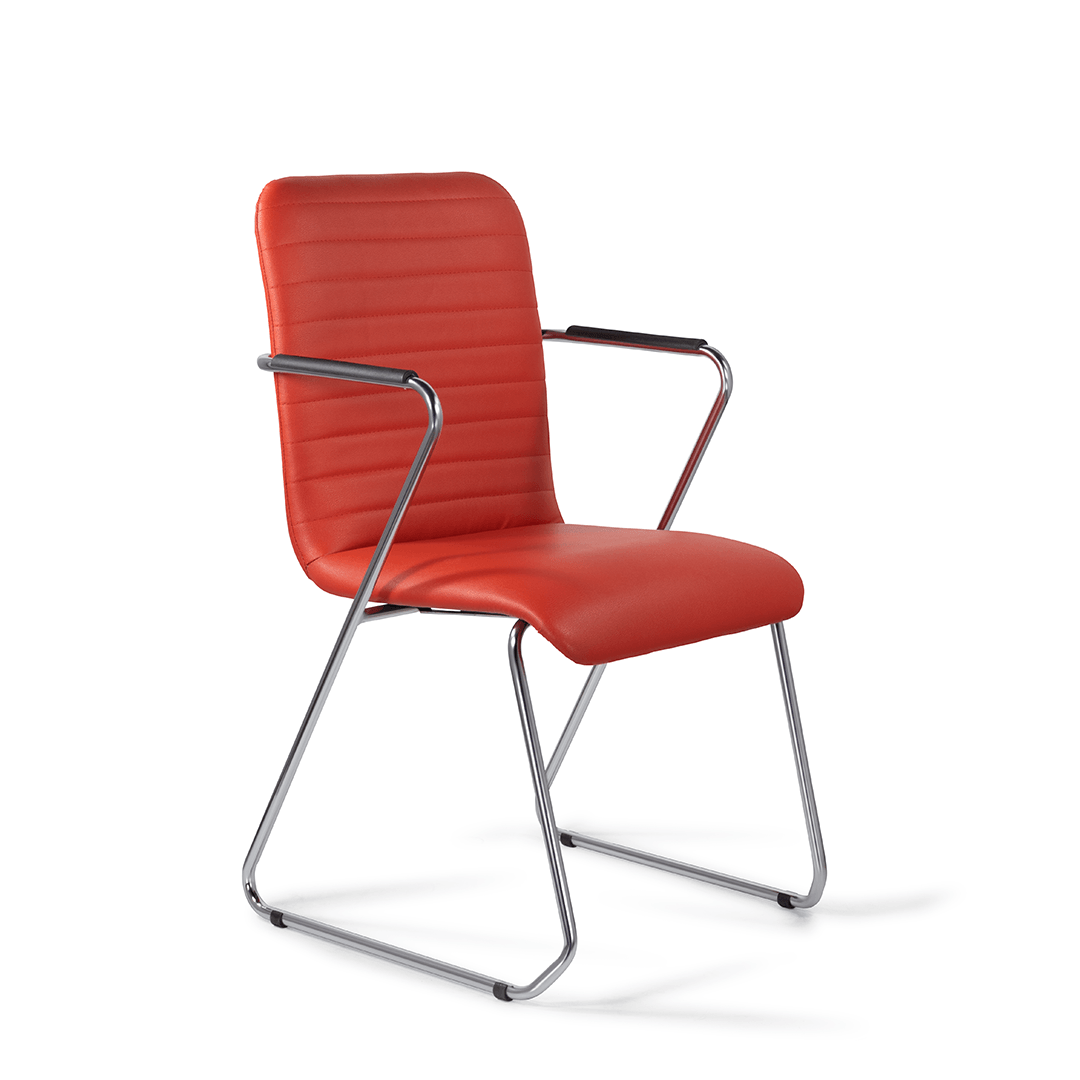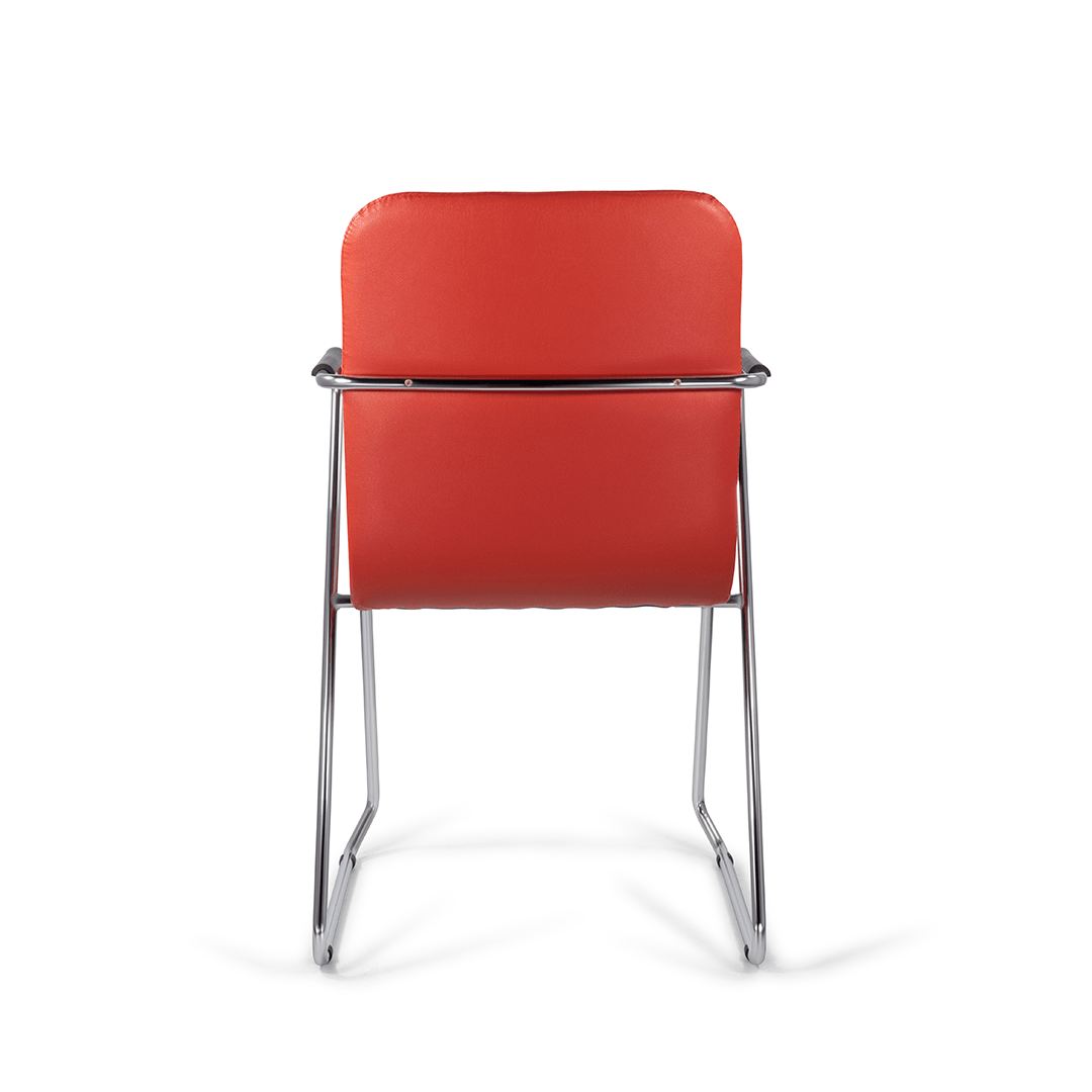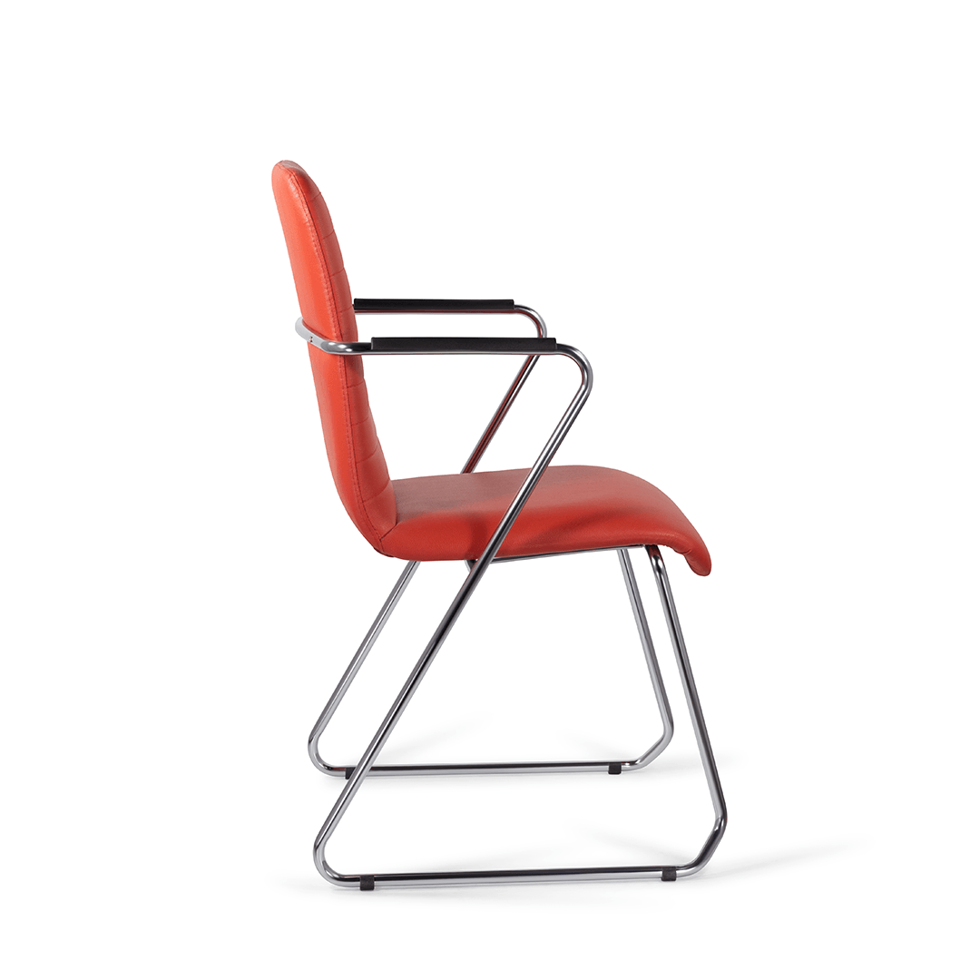 Уникальный каркас из металла и узкие подлокотники с небольшими накладками придают конструкции легкость и прочность. Горизонтальные строчки на спинке подчеркивают элегантный внешний вид. Хромированный каркас выдерживает до 120 кг.