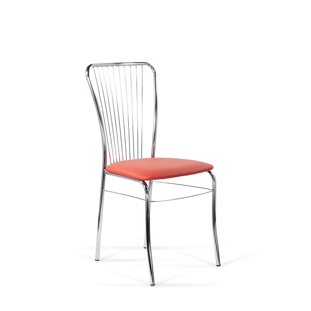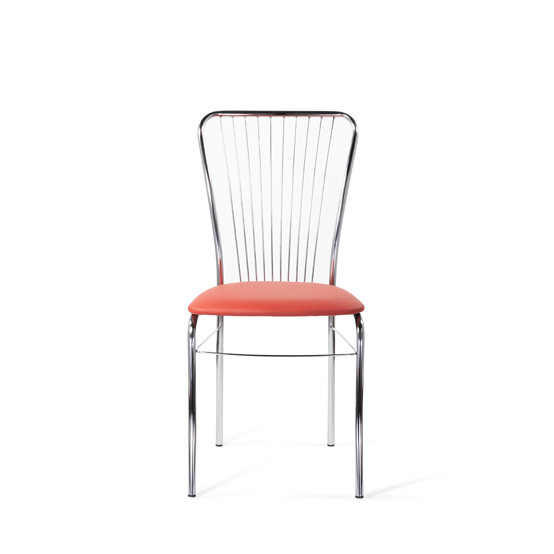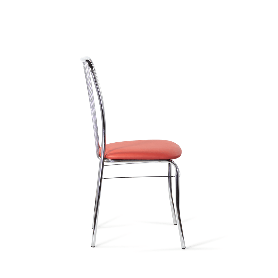Благодаря оригинальной конструкции спинки, выполненной из тонких металлических стержней, напоминающих натянутые струны, стул выглядит стильно. Каркас выполнен из хрома.