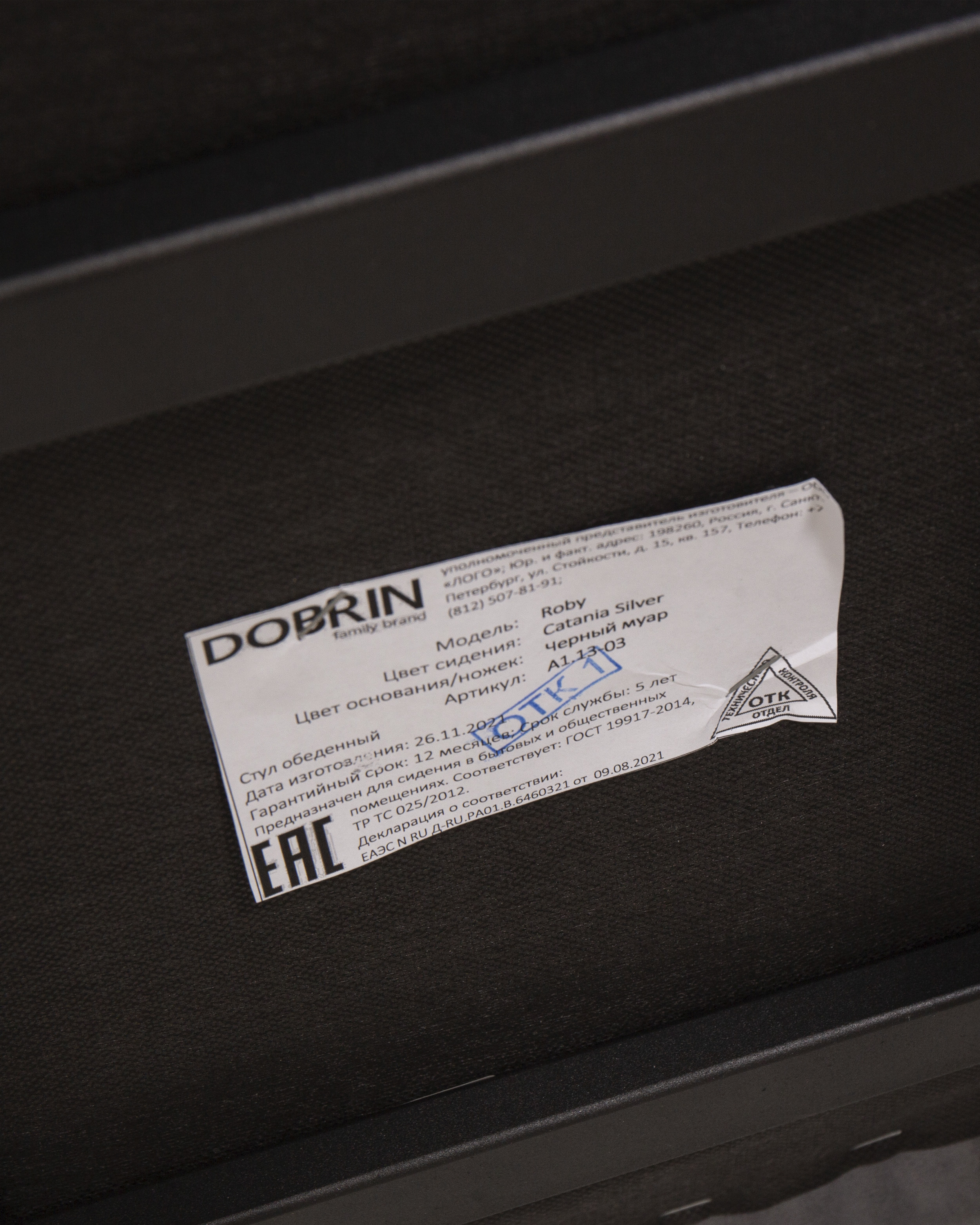 Стул обеденный DOBRIN ROBY, ЭМАЛЬ ЧЕРНЫЙ МУАР велюр Catania Silver