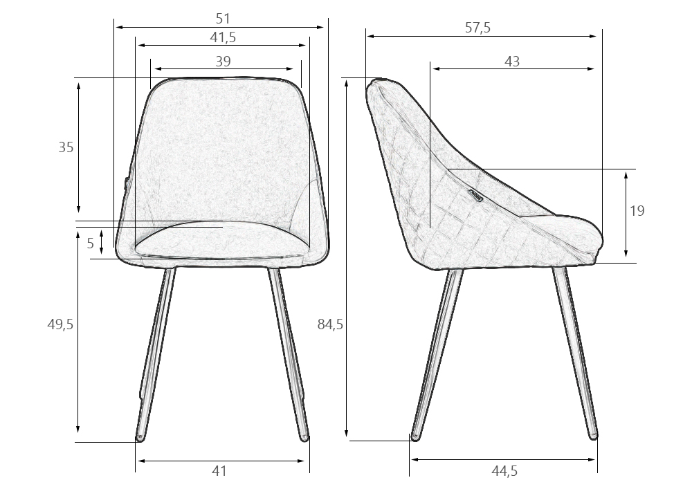 Стул обеденный DOBRIN STELLA, ЭМАЛЬ ЧЕРНЫЙ МУАР велюр Catania Stone