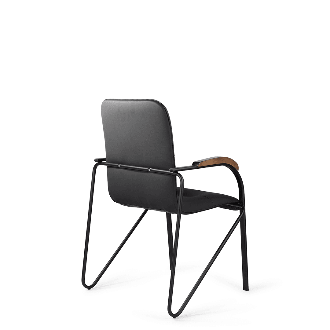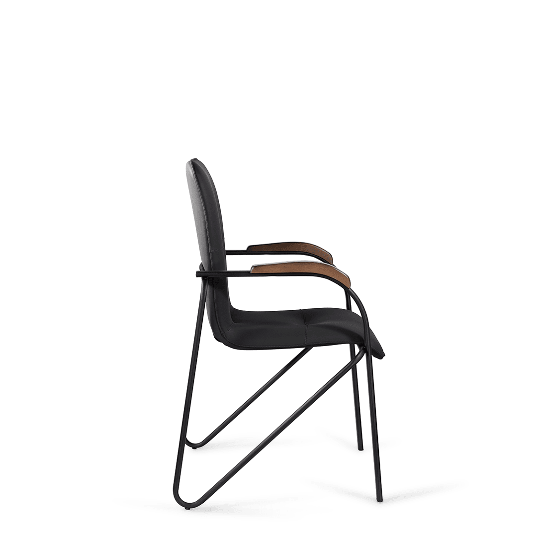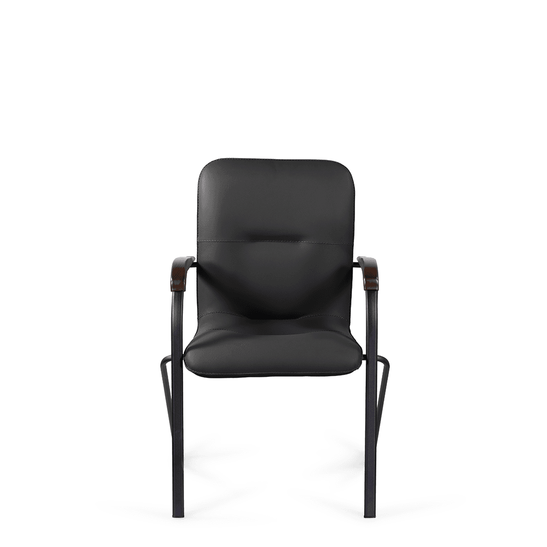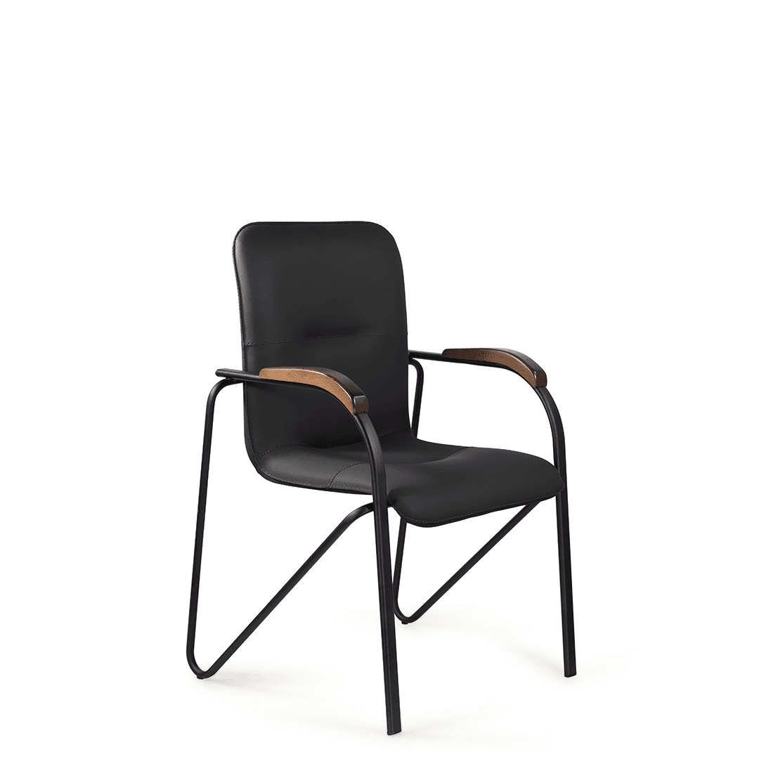 Конференц-кресло идеально будет смотреться как в офисе, так и дома. Интересный каркас и деревянные накладки на металлических подлокотниках придают креслу элегантный внешний вид.