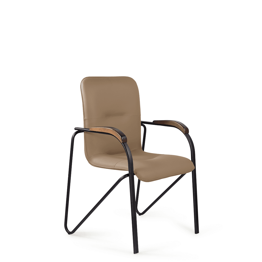 Конференц-кресло идеально будет смотреться как в офисе, так и дома. Интересный каркас и деревянные накладки на металлических подлокотниках придают креслу элегантный внешний вид.