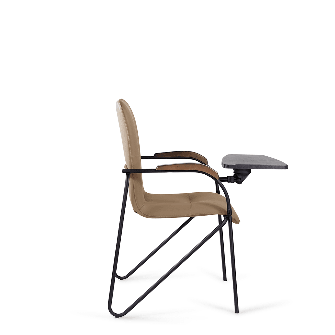 Конференц-кресло идеально будет смотреться как в офисе, так и дома. Интересный каркас и деревянные накладки на металлических подлокотниках придают креслу элегантный внешний вид. К креслу прилагается столик, выполненный из пластика. Модель отлично подойдет для конференц-залов, переговорных, актовых залов.