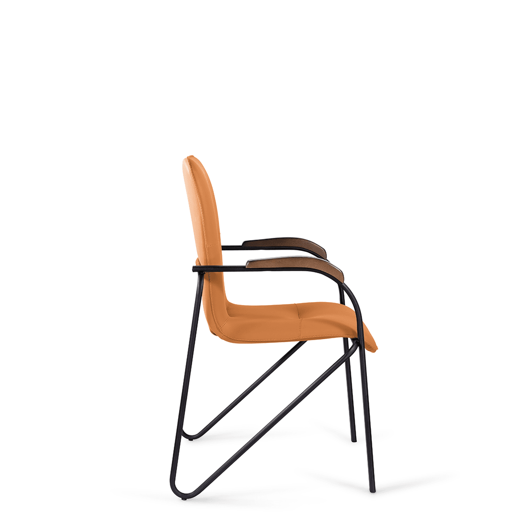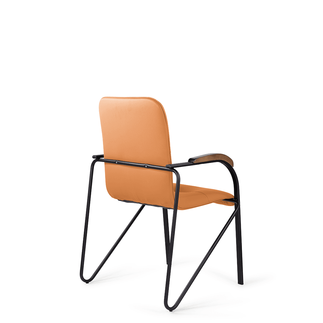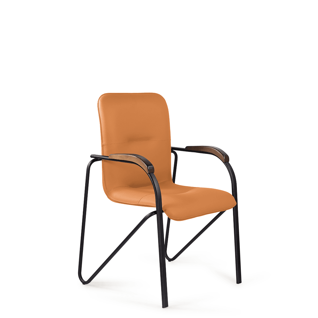 Конференц-кресло идеально будет смотреться как в офисе, так и дома. Интересный каркас и деревянные накладки на металлических подлокотниках придают креслу элегантный внешний вид.