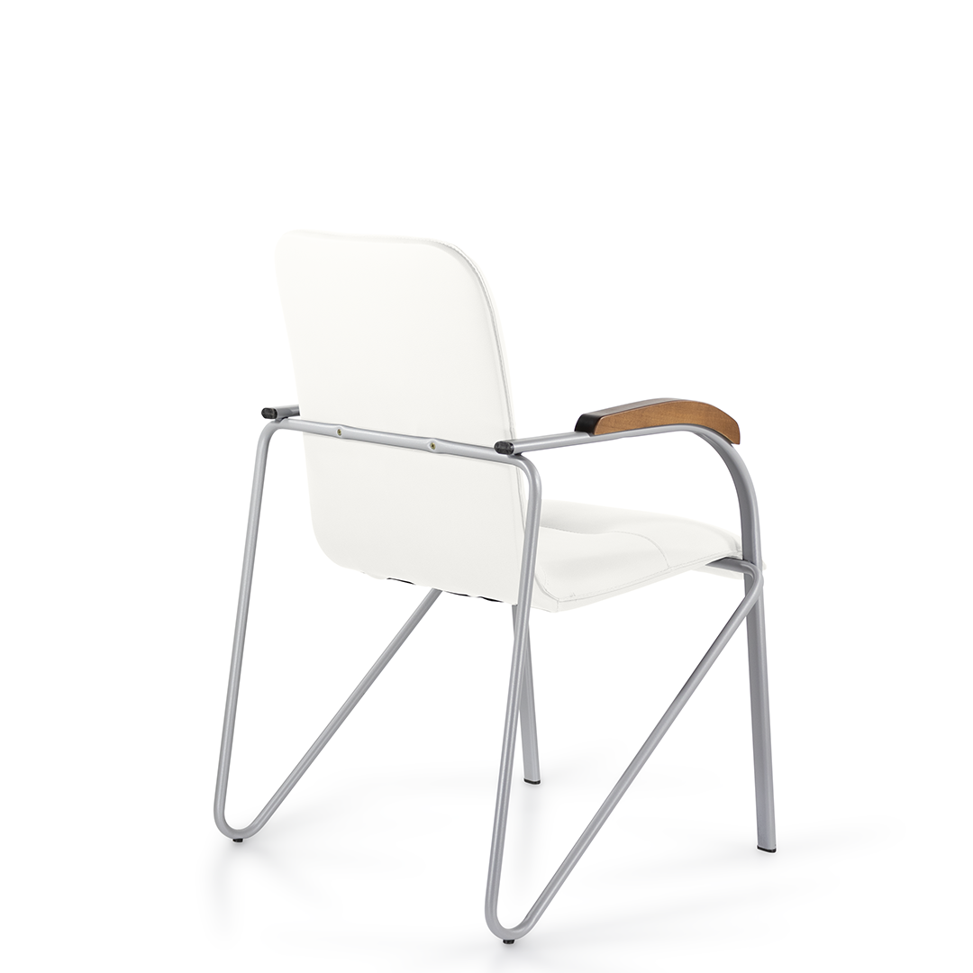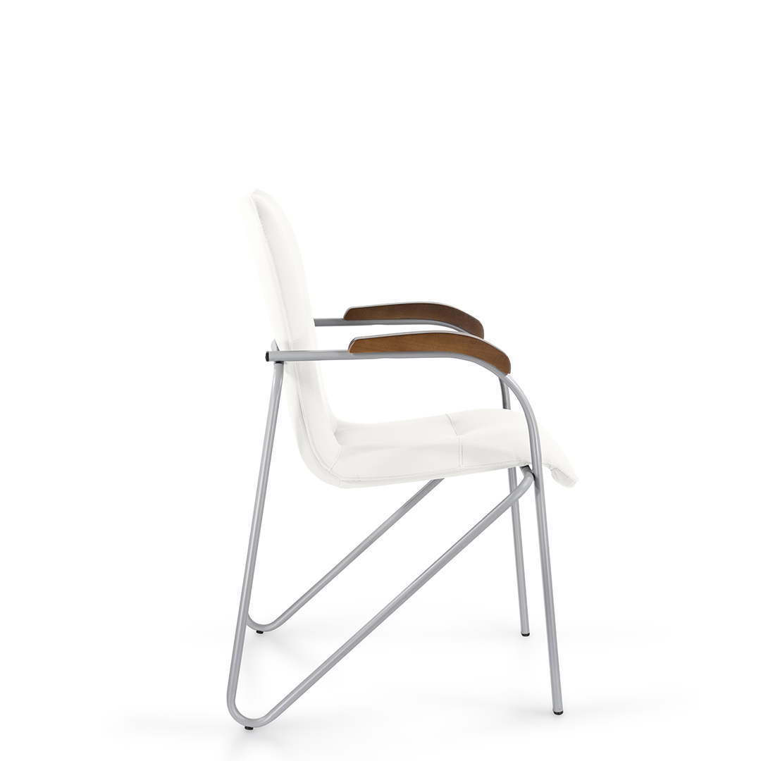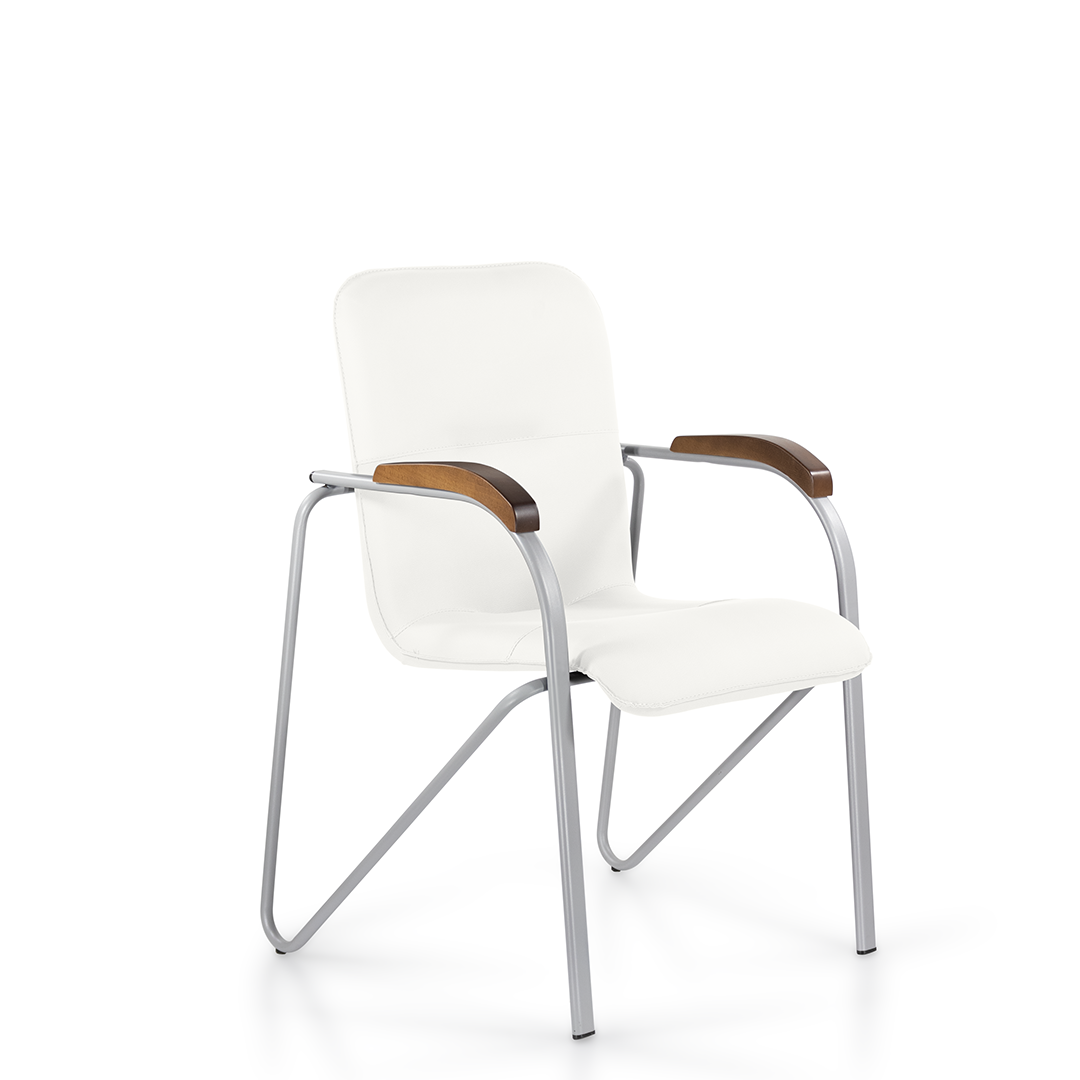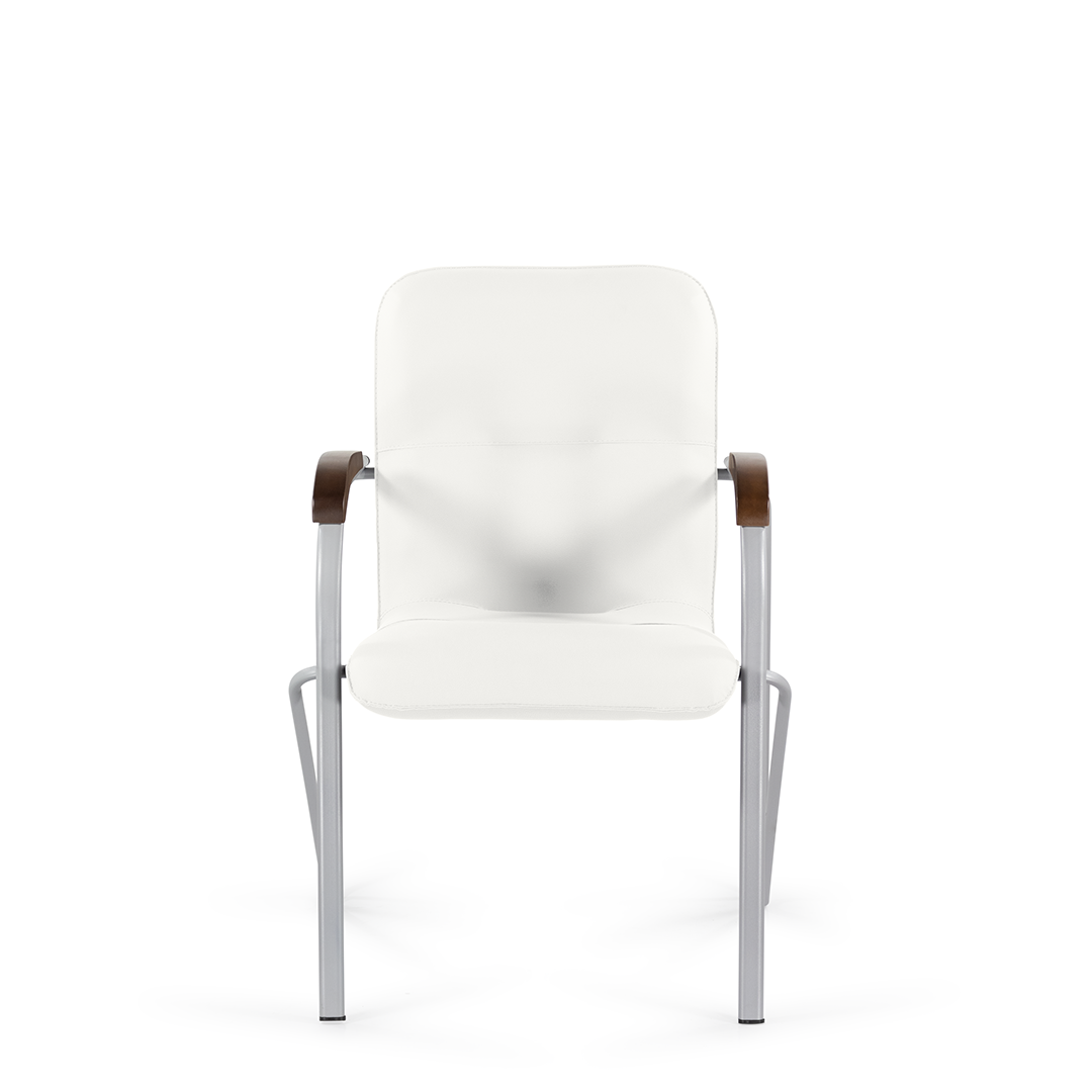 Конференц-кресло идеально будет смотреться как в офисе, так и дома. Интересный каркас и деревянные накладки на металлических подлокотниках придают креслу элегантный внешний вид.