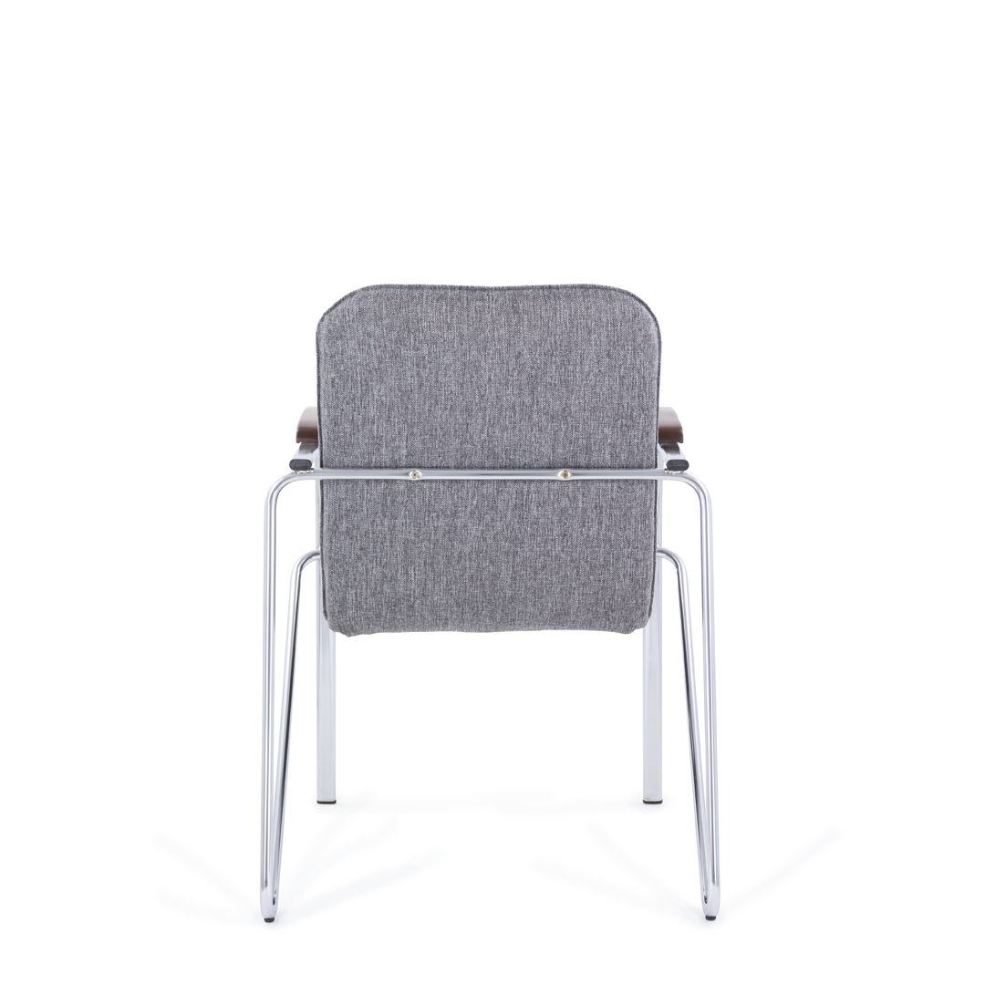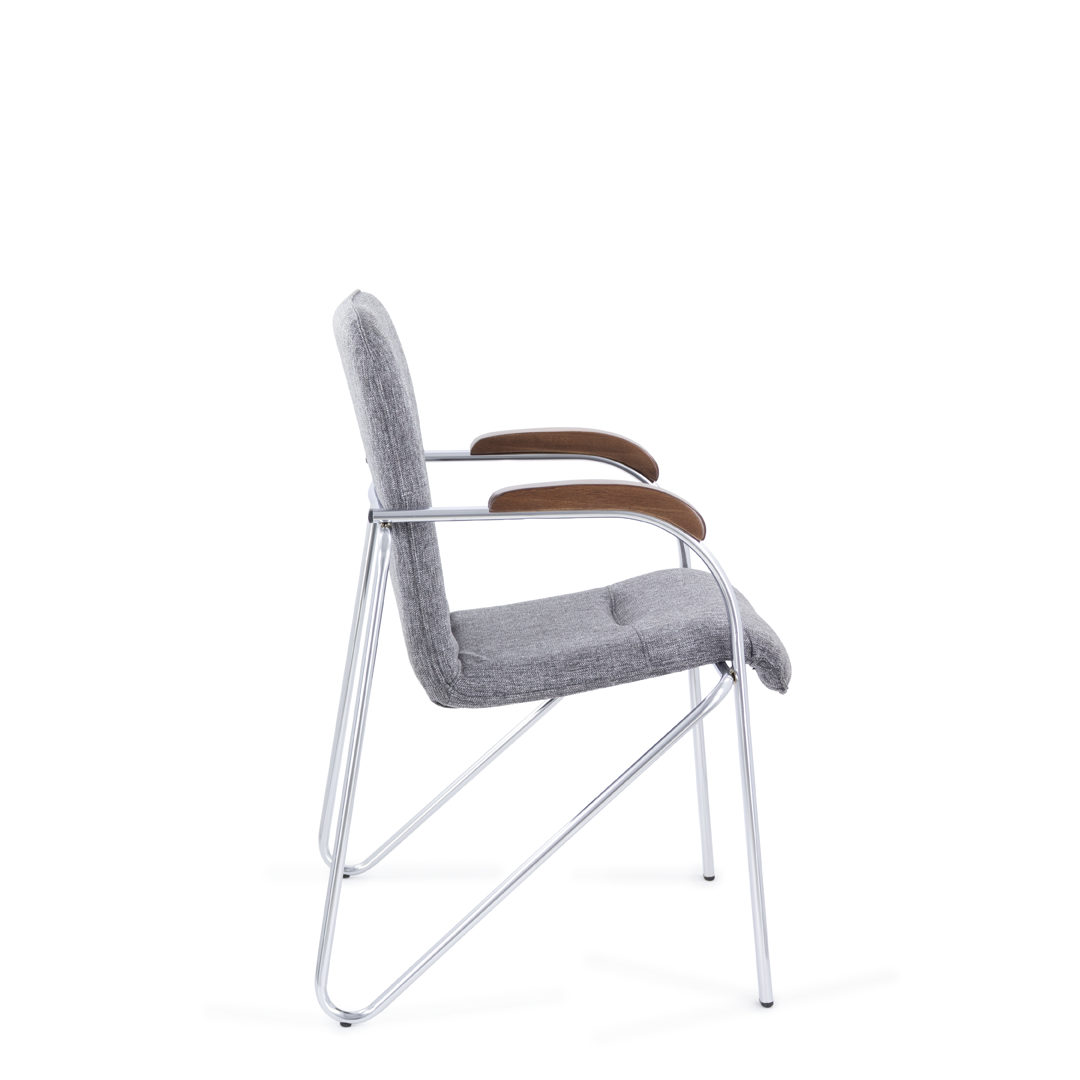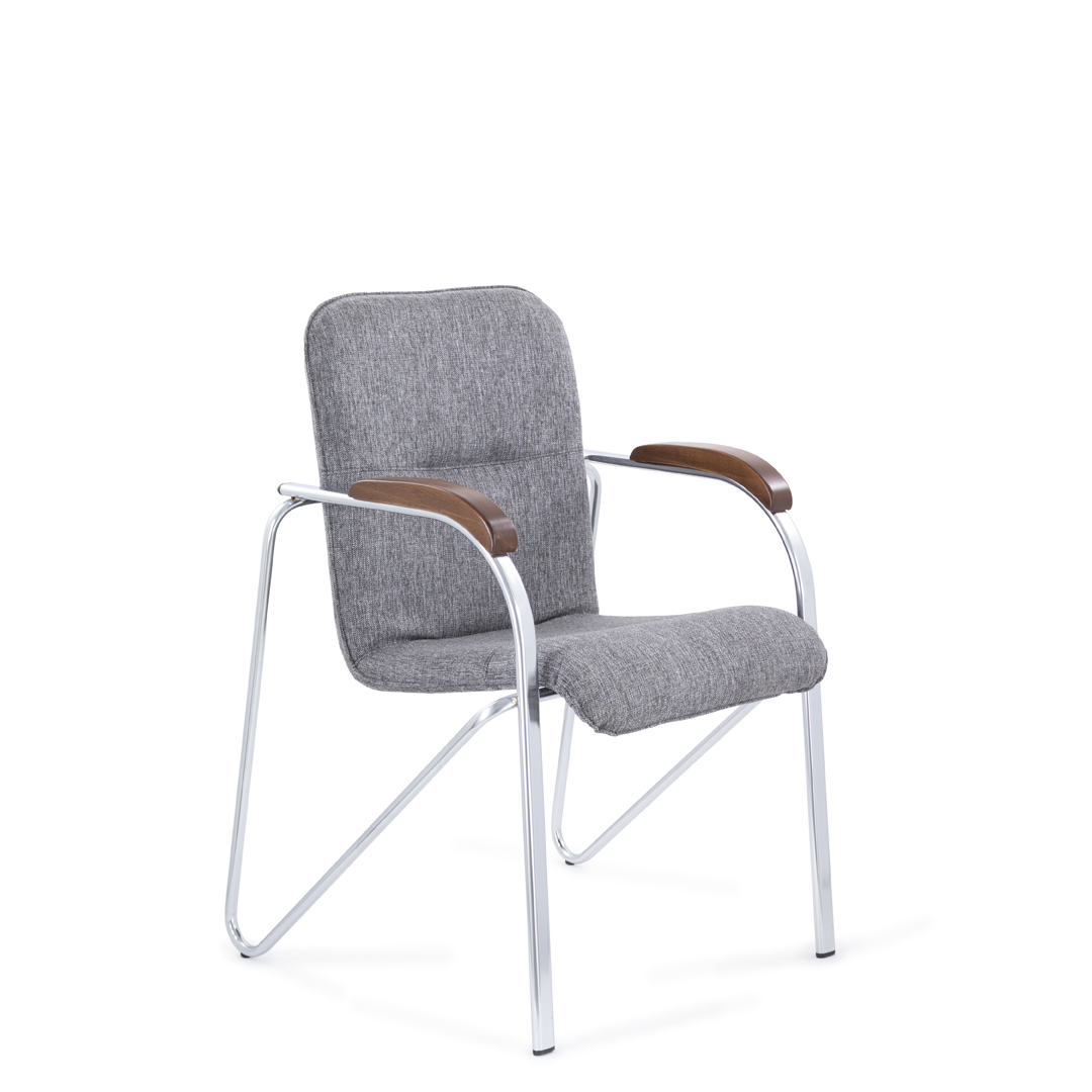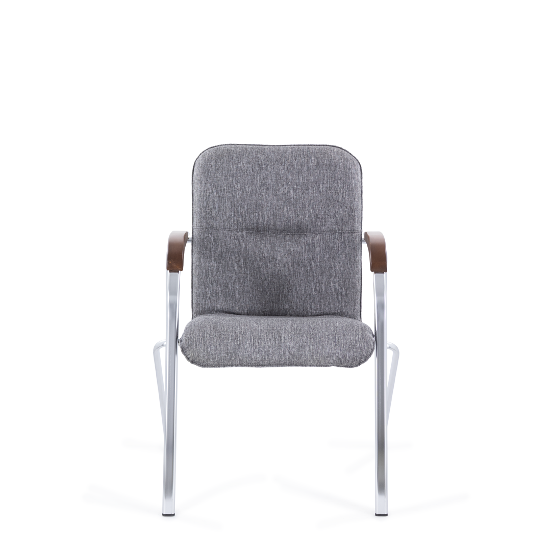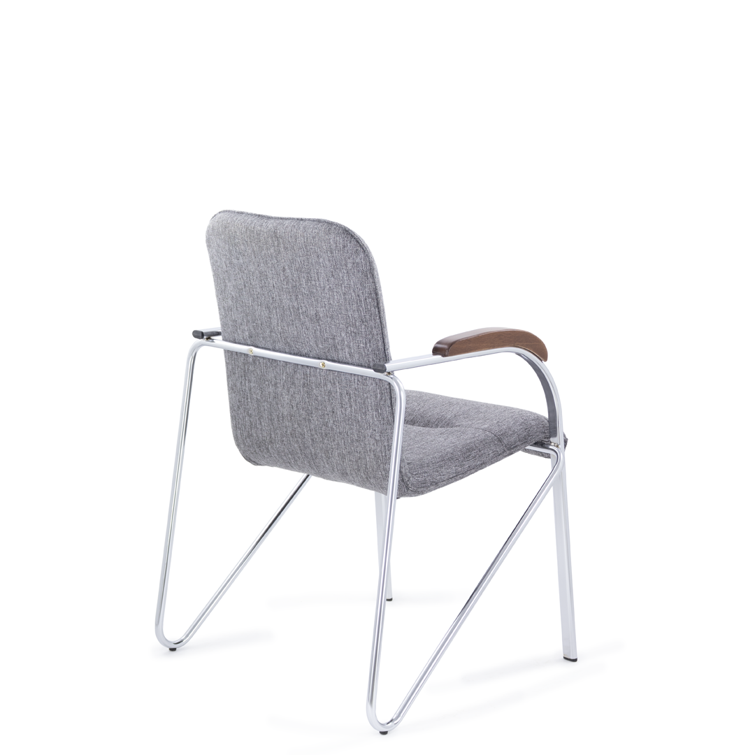 Конференц-кресло идеально будет смотреться как в офисе, так и дома. Интересный каркас и деревянные накладки на металлических подлокотниках придают креслу элегантный внешний вид.