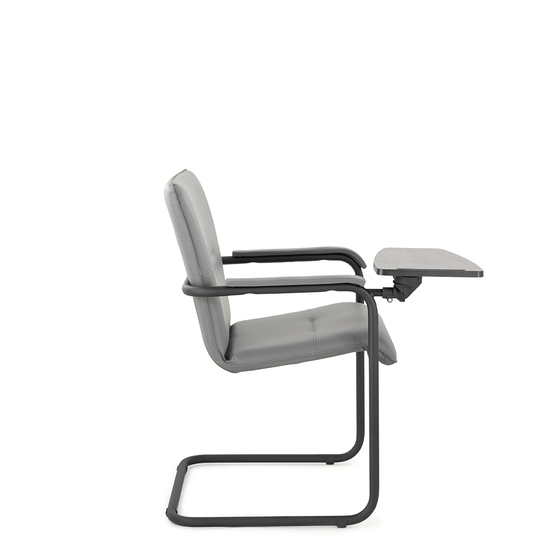 Элегантное конференц-кресло для посетителей имеет широкий выбор расцветки обивки кресла, мягкие подлокотники с накладками люкс и окрашенный в черный цвет каркас. К креслу прилагается столик, выполненный из пластика. Модель отлично подойдет для конференц-залов, переговорных, актовых залов.