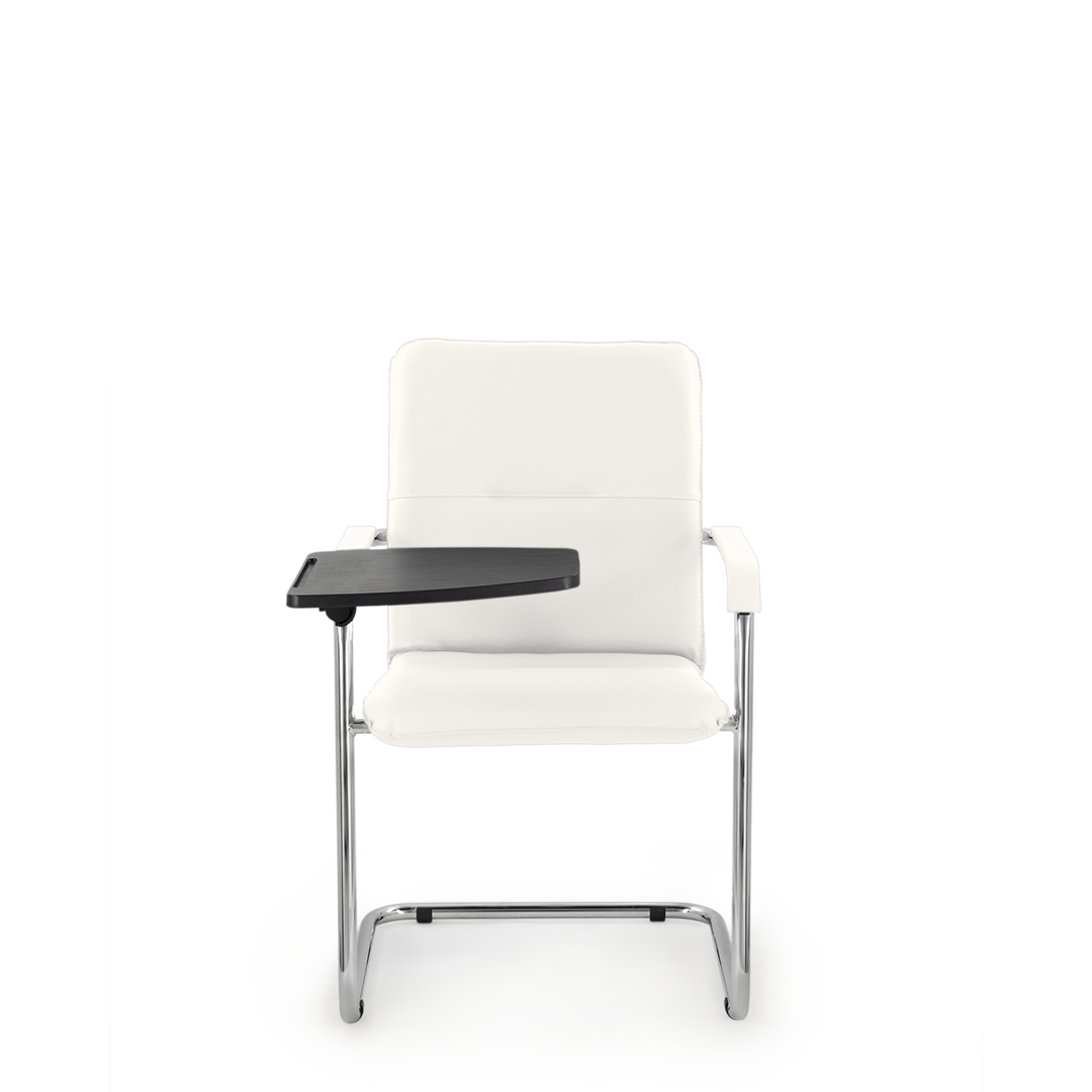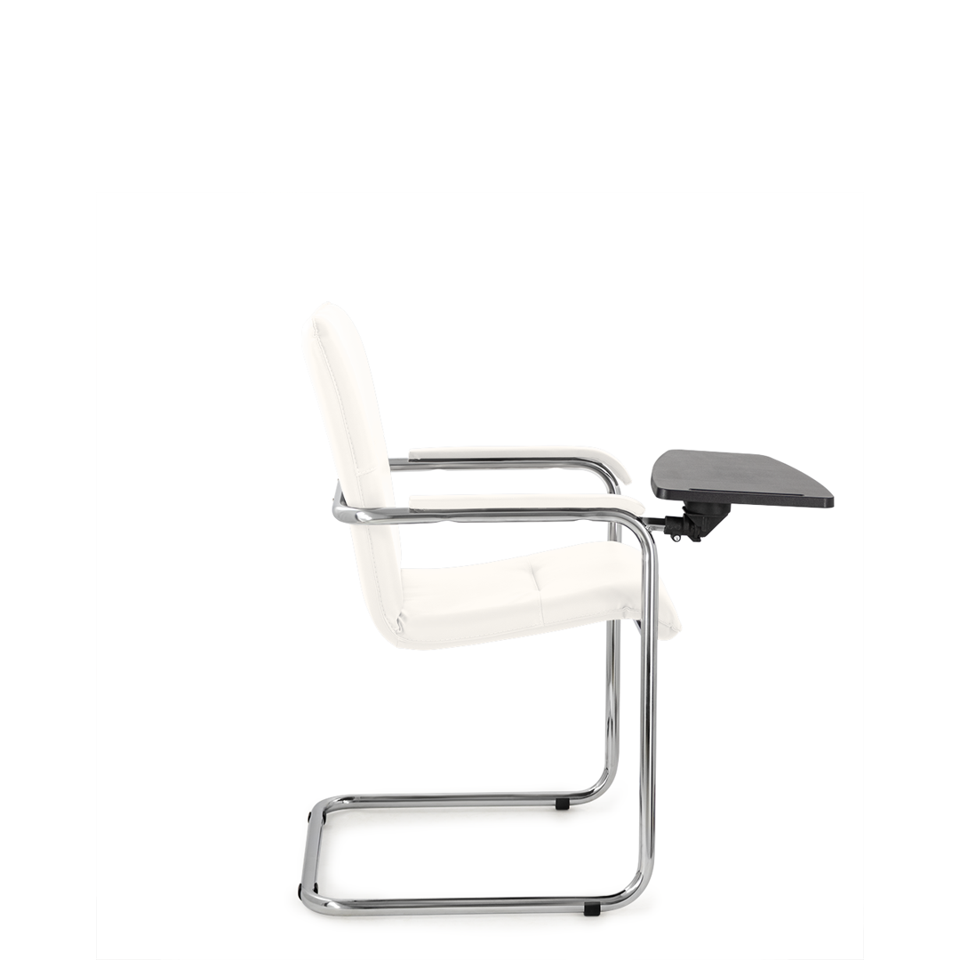 Элегантное кресло для посетителей имеет широкий выбор расцветки обивки кресла, мягкие подлокотники с накладками люкс и хромированный каркас. К креслу прилагается столик, выполненный из пластика. Модель отлично подойдет для конференц-залов, переговорных, актовых залов.