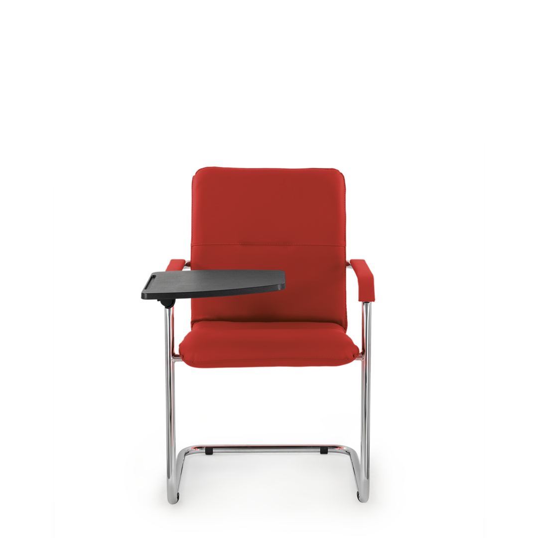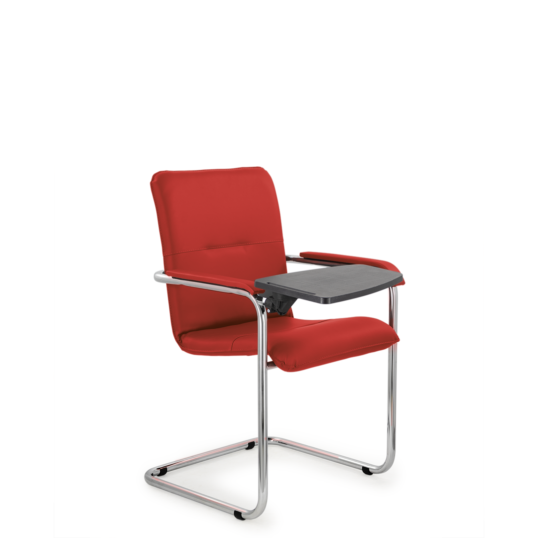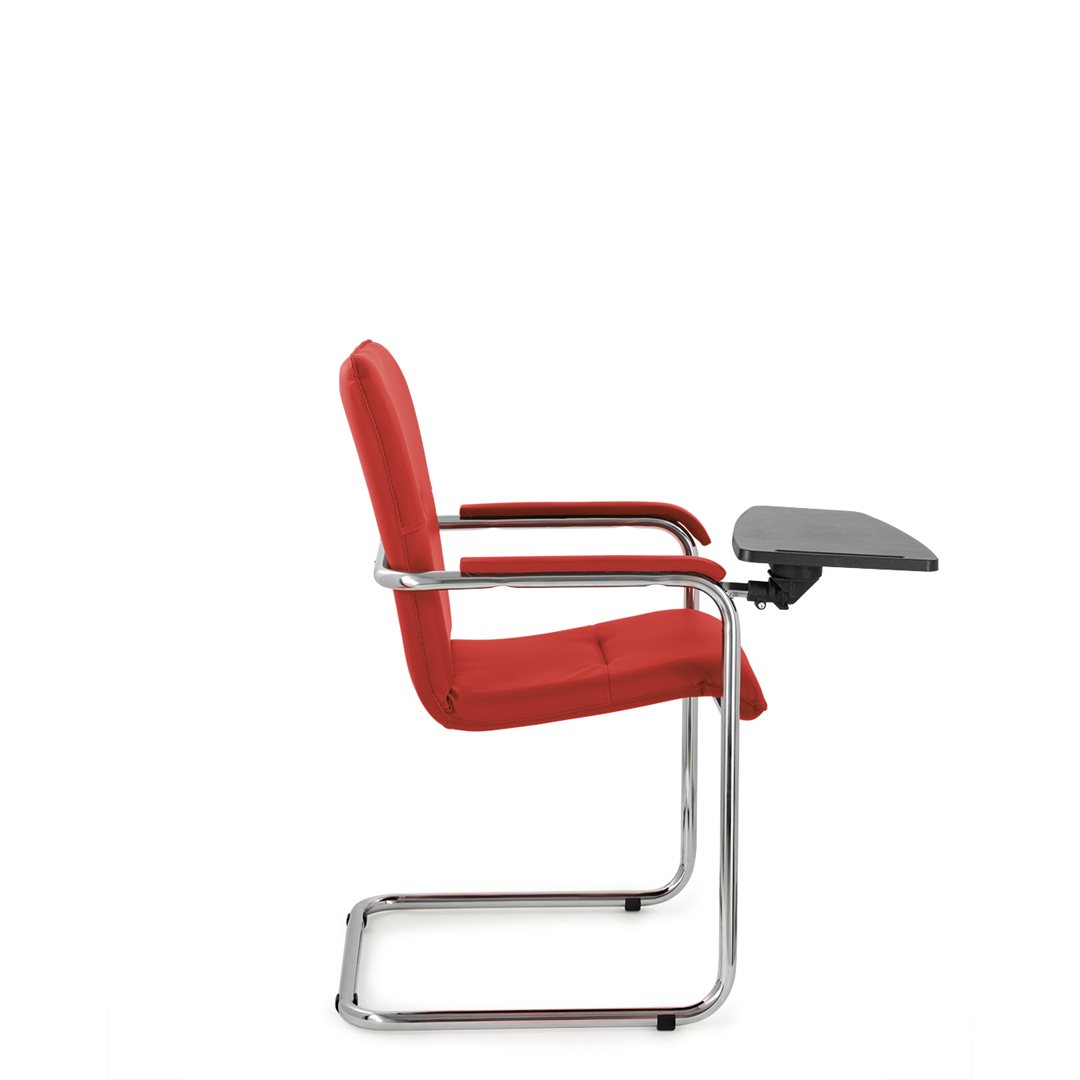 Элегантное кресло для посетителей имеет широкий выбор расцветки обивки кресла, мягкие подлокотники с накладками люкс и хромированный каркас. К креслу прилагается столик, выполненный из пластика. Модель отлично подойдет для конференц-залов, переговорных, актовых залов.