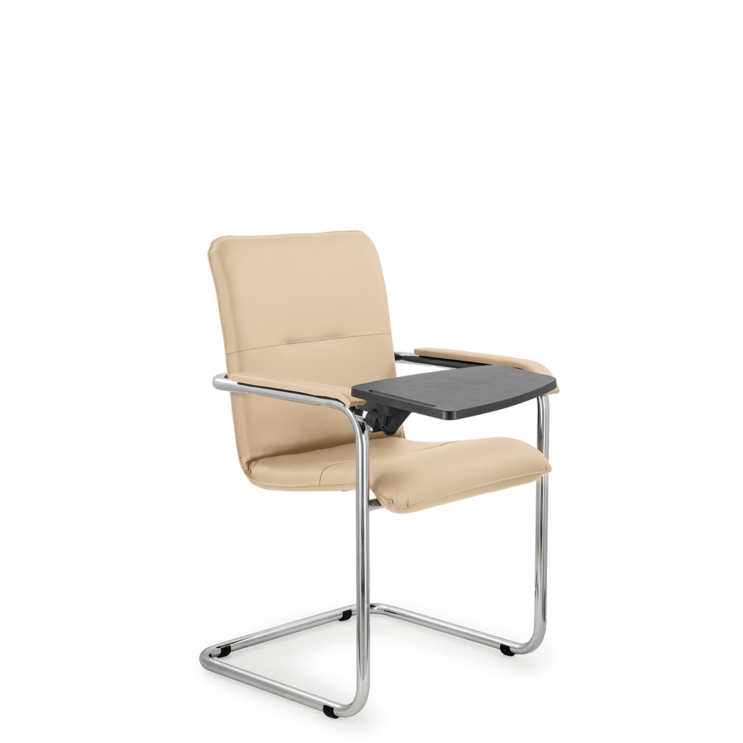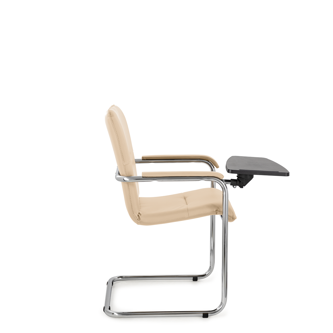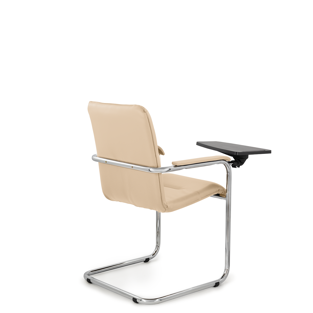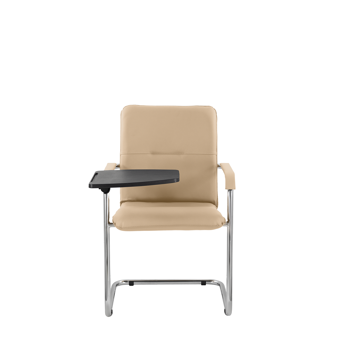 Элегантное кресло для посетителей имеет широкий выбор расцветки обивки кресла, мягкие подлокотники с накладками люкс и хромированный каркас. К креслу прилагается столик, выполненный из пластика. Модель отлично подойдет для конференц-залов, переговорных, актовых залов.