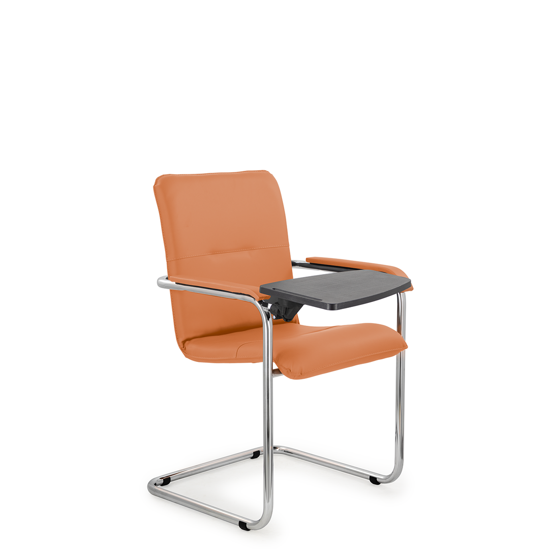 Элегантное кресло для посетителей имеет широкий выбор расцветки обивки кресла, мягкие подлокотники с накладками люкс и хромированный каркас. К креслу прилагается столик, выполненный из пластика. Модель отлично подойдет для конференц-залов, переговорных, актовых залов.