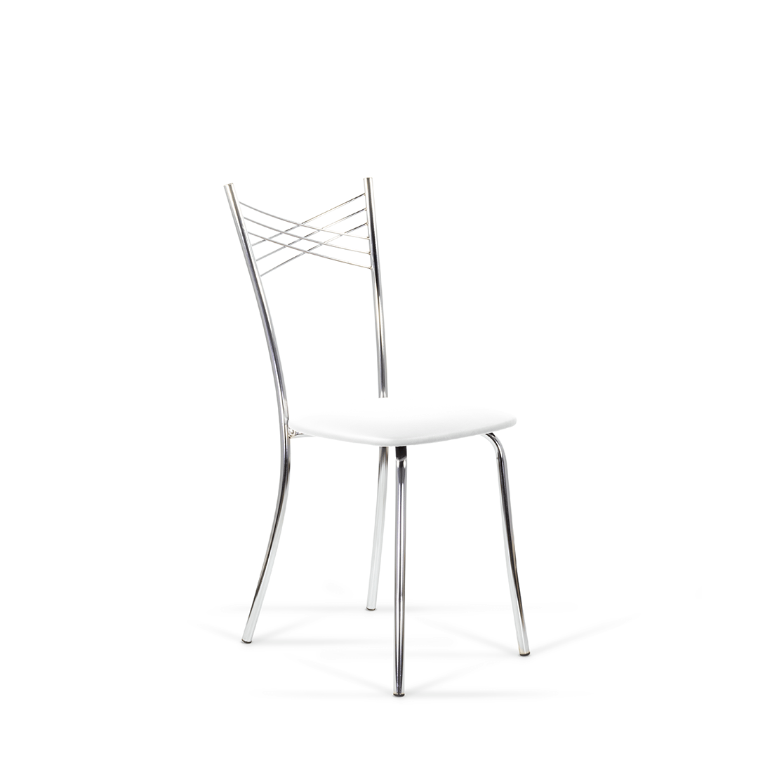 Воздушная модель стула имеет интересный дизайн спинки, представляющую собой крестообразное пресечение нескольких металлических нитей, образующих в центре маленькие ромбики. Каркас стула выполнен из хромированного металла