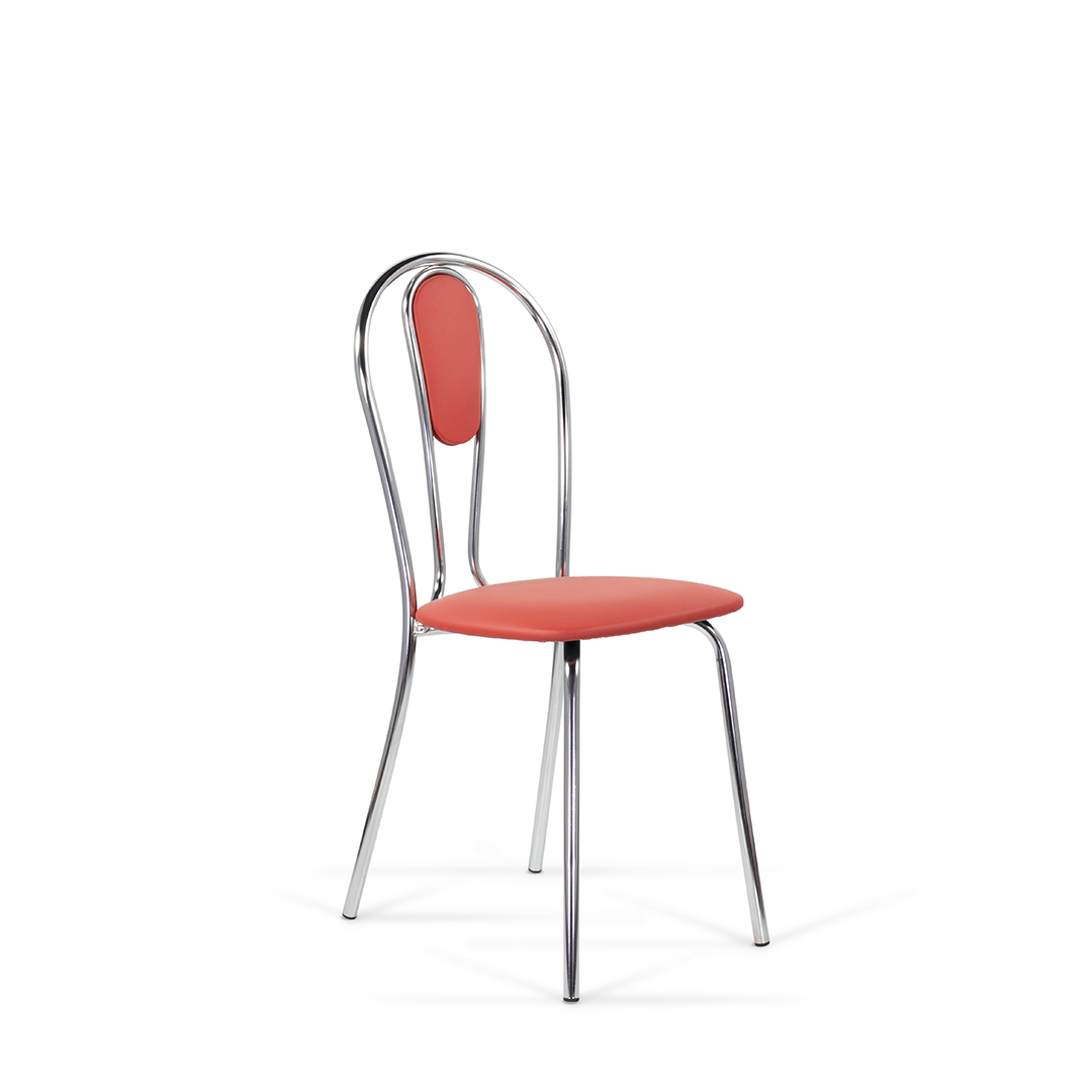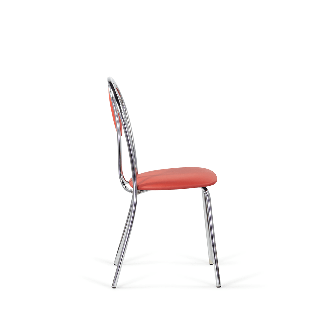 Мягкая вставка на спинке дополняет изящный дизайн стула, что позволяет ему сочетаться с разными интерьерами. Подходит как для домашнего использования, так и для мест общественного питания. Каркас стула выполнен из хромированного металла.