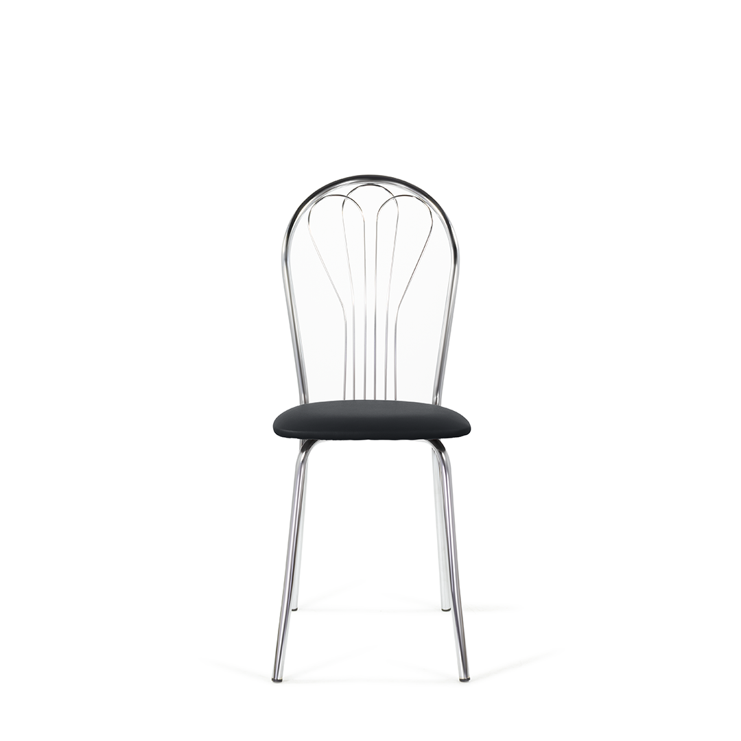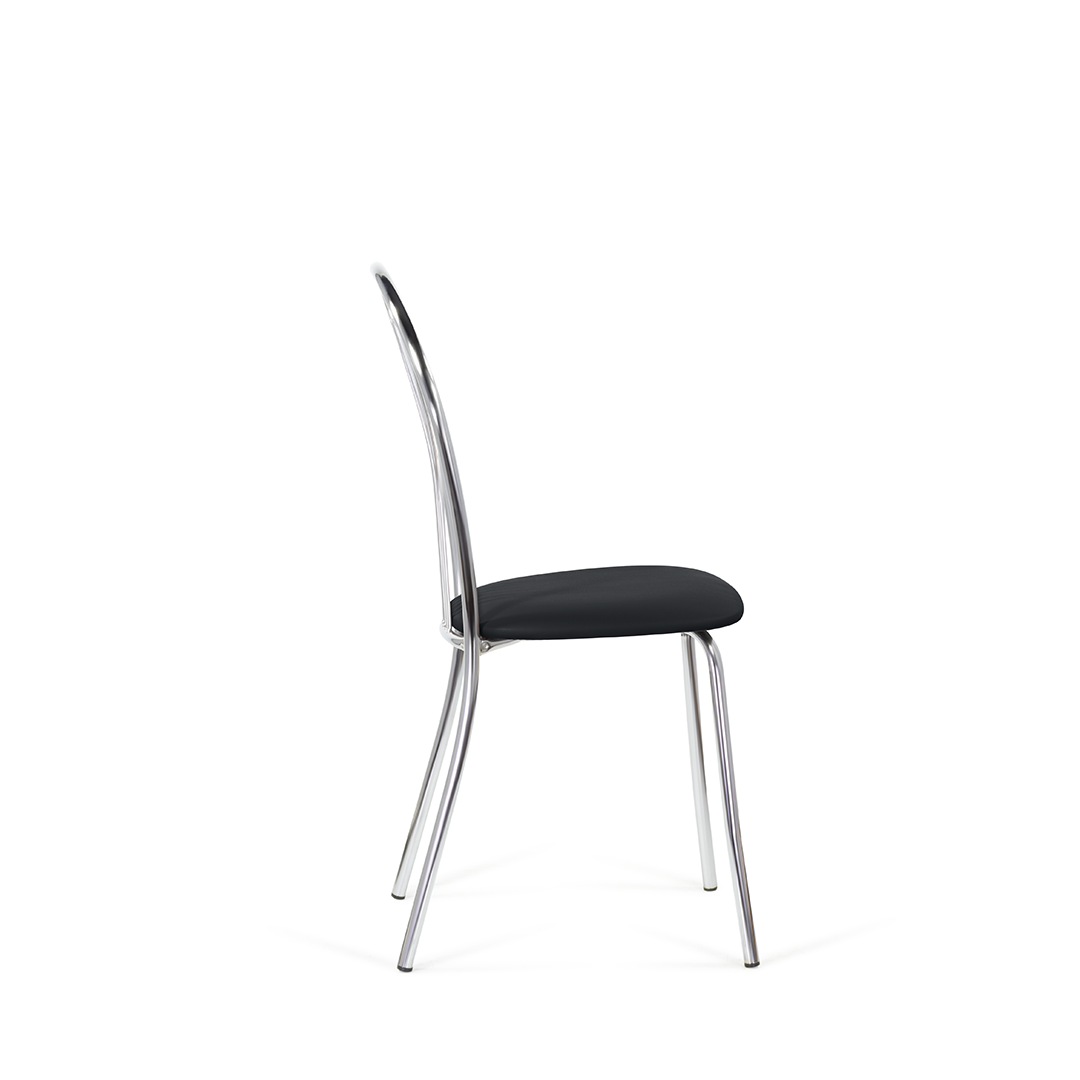Небольшой стул с округлой спинкой и мягким сиденьем может выступать как часть обеденной зоны, а может быть самостоятельной деталью в интерьере. Каркас стула выполнен из хромированного металла.